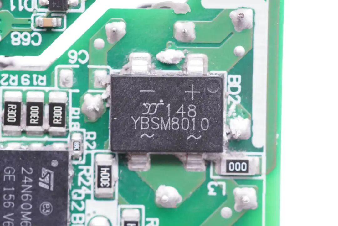 另一颗扬杰YBSM8010整流桥在主板正面。