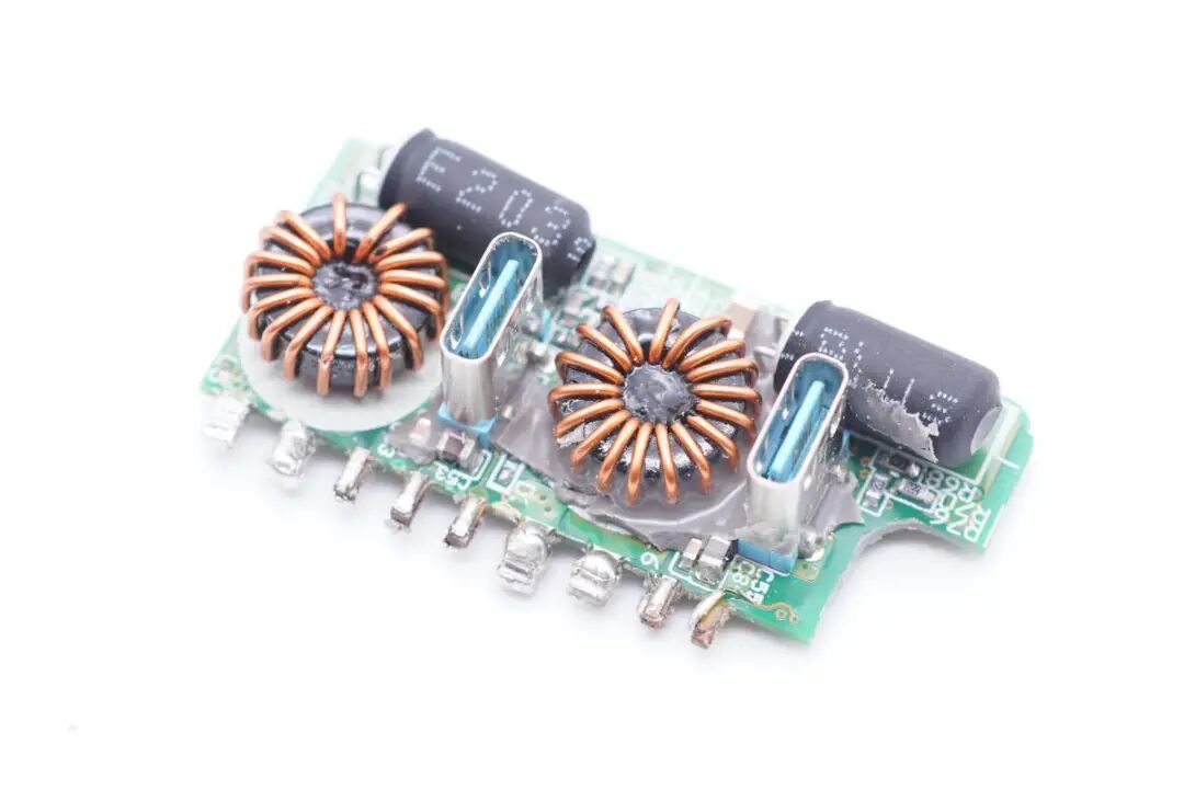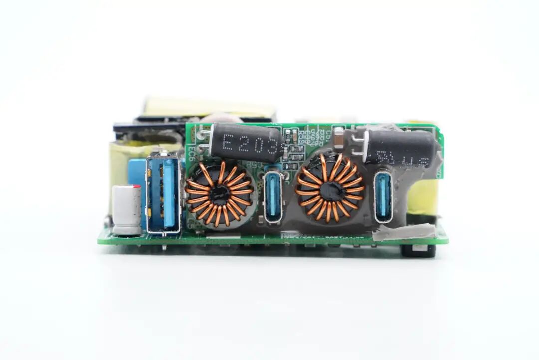 输出端一览,USB-A母座焊接在左侧主板上,另外两个C口母座焊接在小板上。