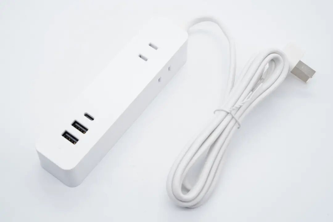 本次要拆的这款采用长条造型设计,同样不会占用桌面空间。配备三个双孔AC插口和2A1C USB接口,插线即可充电,支持笔电和手机同时快充,日常使用方便。下面就一起来看看产品的设计用料如何。