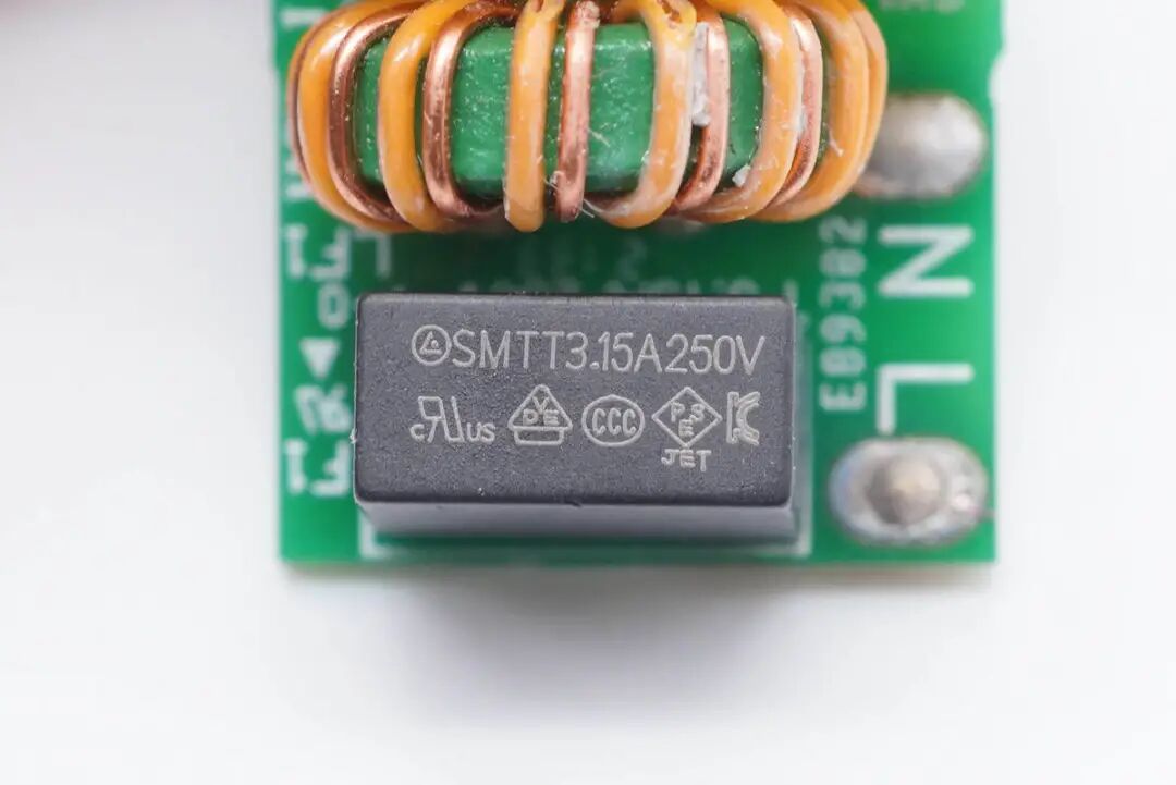 充电头网通过拆解了解到,插座内置USB模块采用QR开关电源架构,采用茂睿芯MK2697A+MK91808高频氮化镓方案,搭配的氮化镓器件是GaN Systems GS-065-011-1-L。C口由智融SW2303控制输出电压,两个A口都进行同步整流二次降压后由天德钰FP6601A控制输出。采用万京源品牌电解电容和固态电容进行输入输出滤波,整体用料不错。
