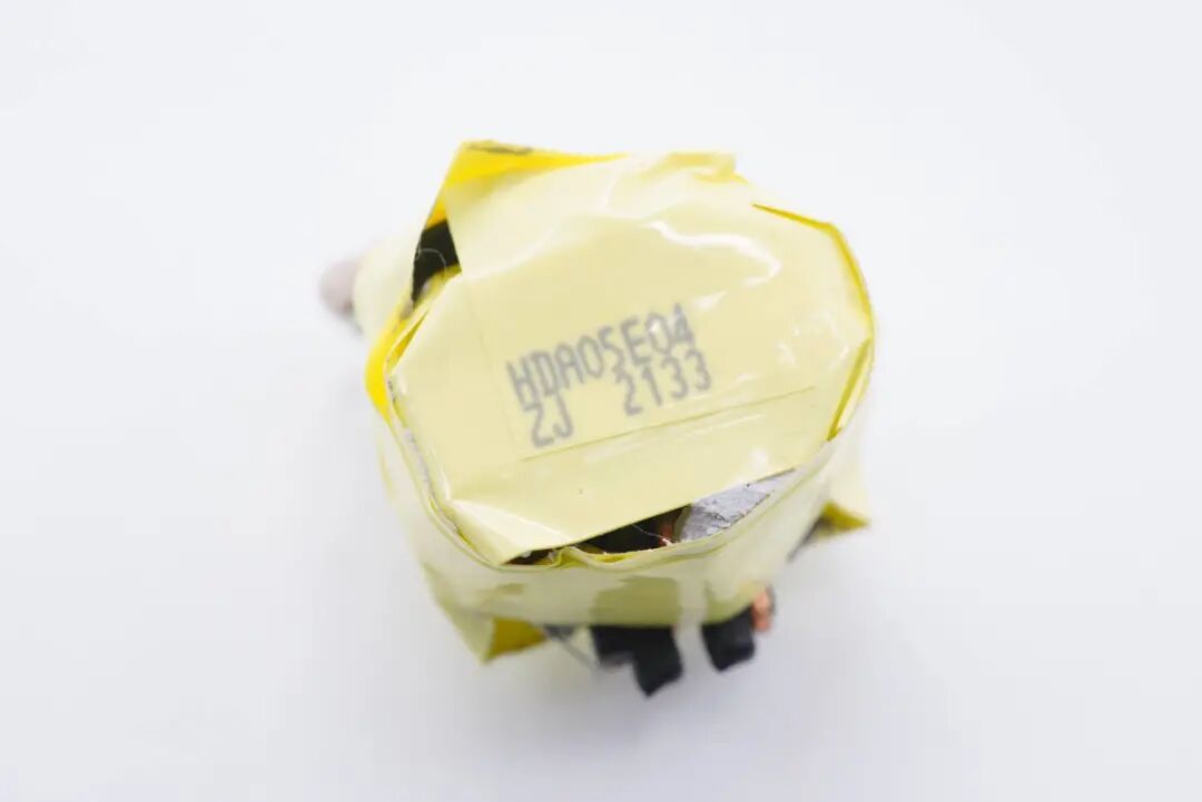 输入端焊接小板,初级侧还设有三颗高压滤波电解电容、工字电感、变压器等器件。
