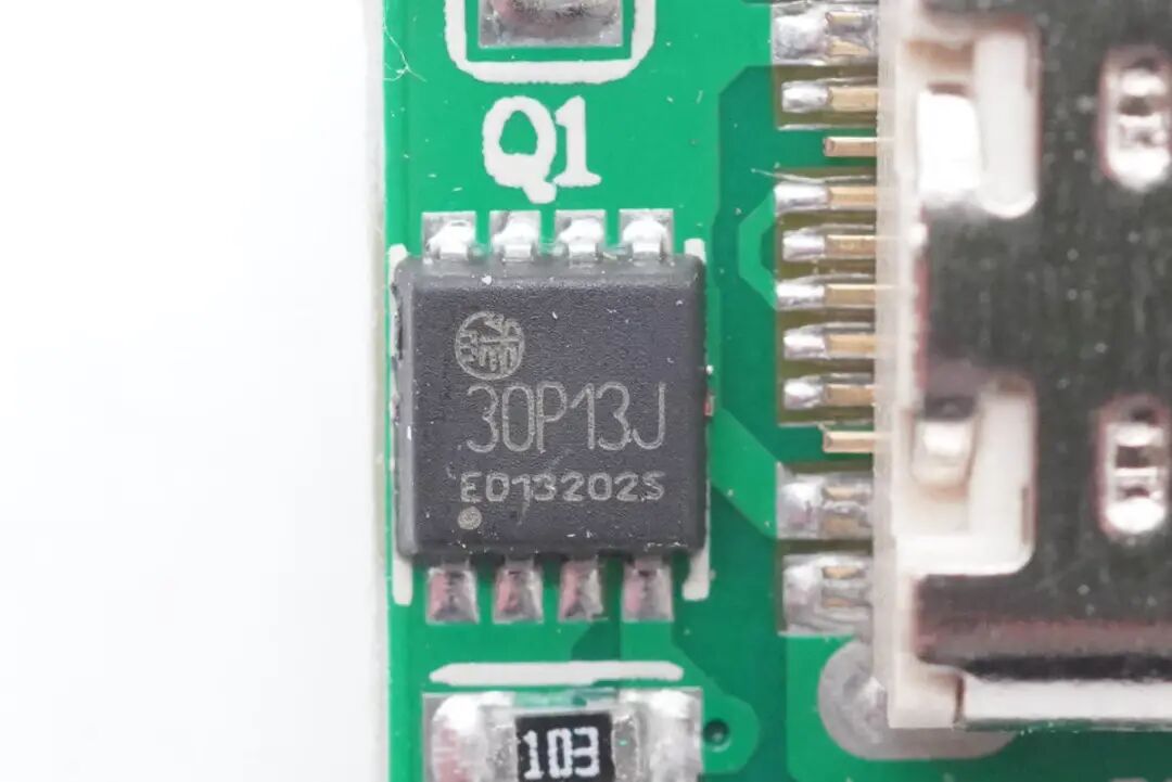 将小板拆下,正面设有一颗输出VBUS开关管。