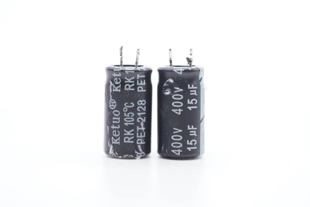 两颗高压滤波电解电容来自科拓,规格均为400V 15μF。