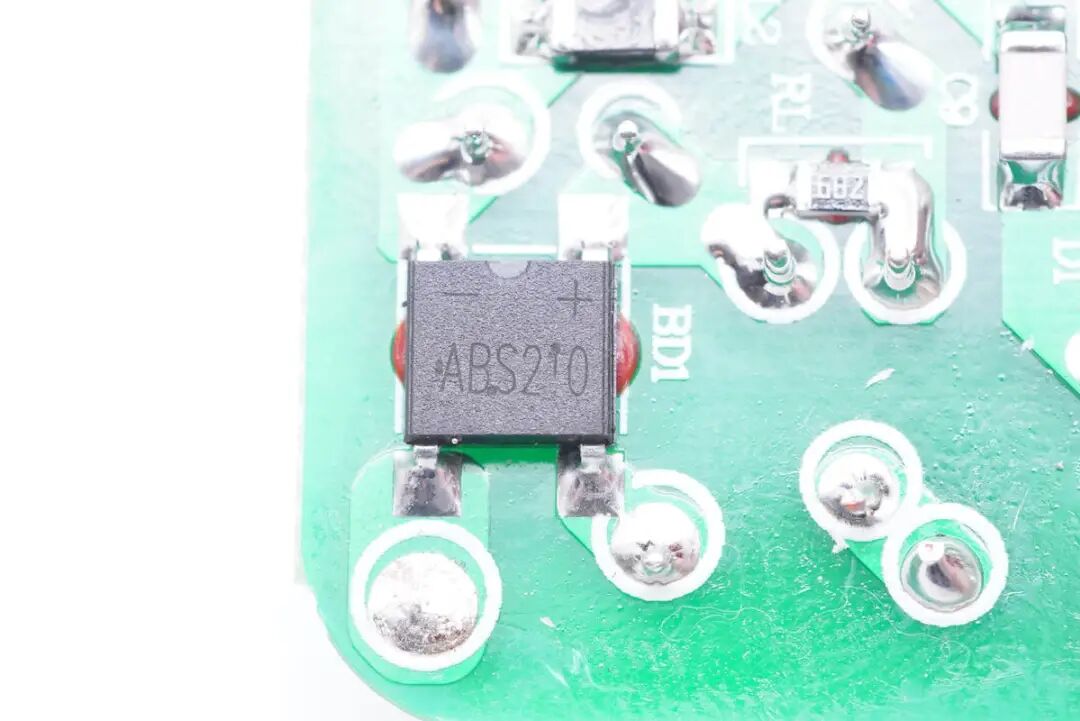 板子背面一览,设有整流桥以及开关电源初次级芯片,板子初级次级分界明显。