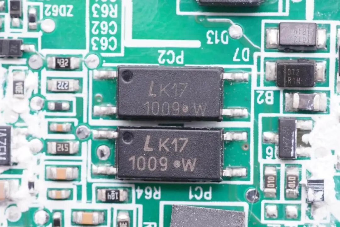 两颗光耦特写,用于输入电压反馈和电路保护。
