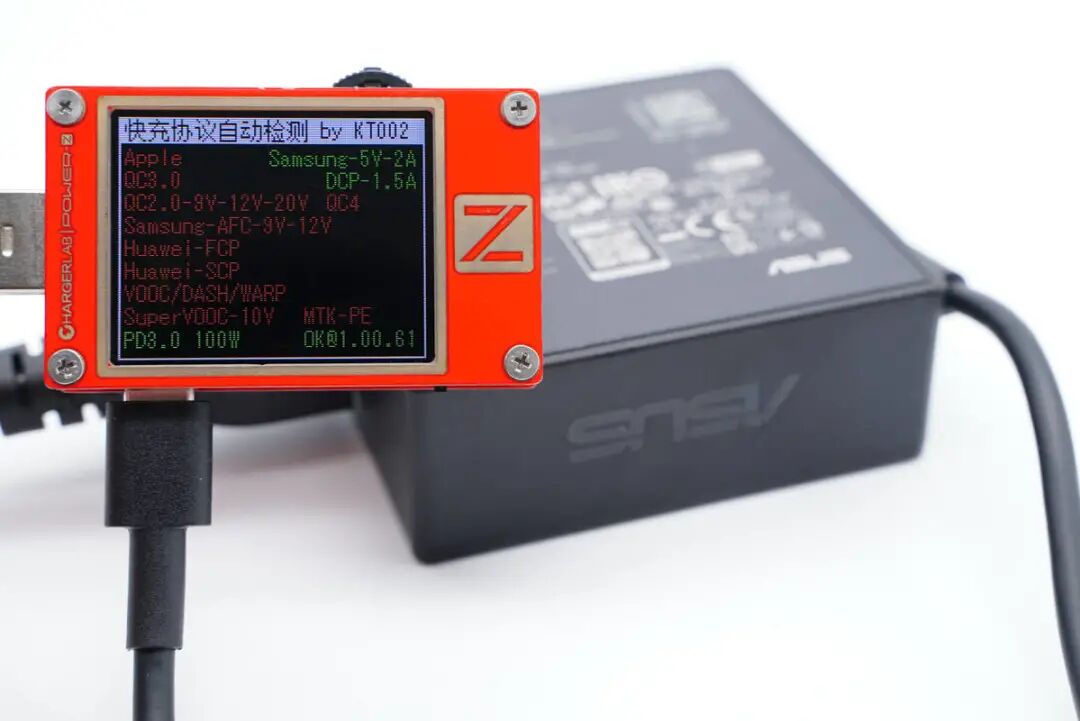 使用ChargerLAB POWER-Z KT002测得充电器仅支持PD3.0快充协议。