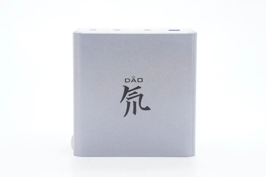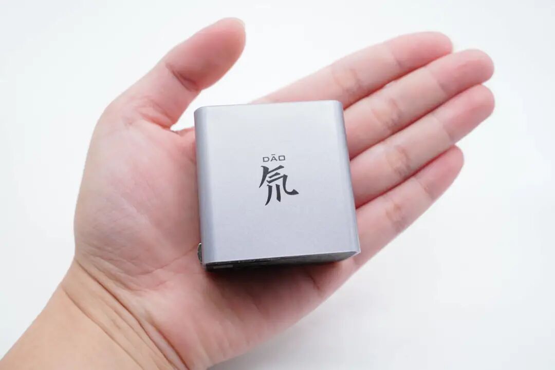充电器造型为方块,整体外观延续氘锋系列的银灰ID设计。