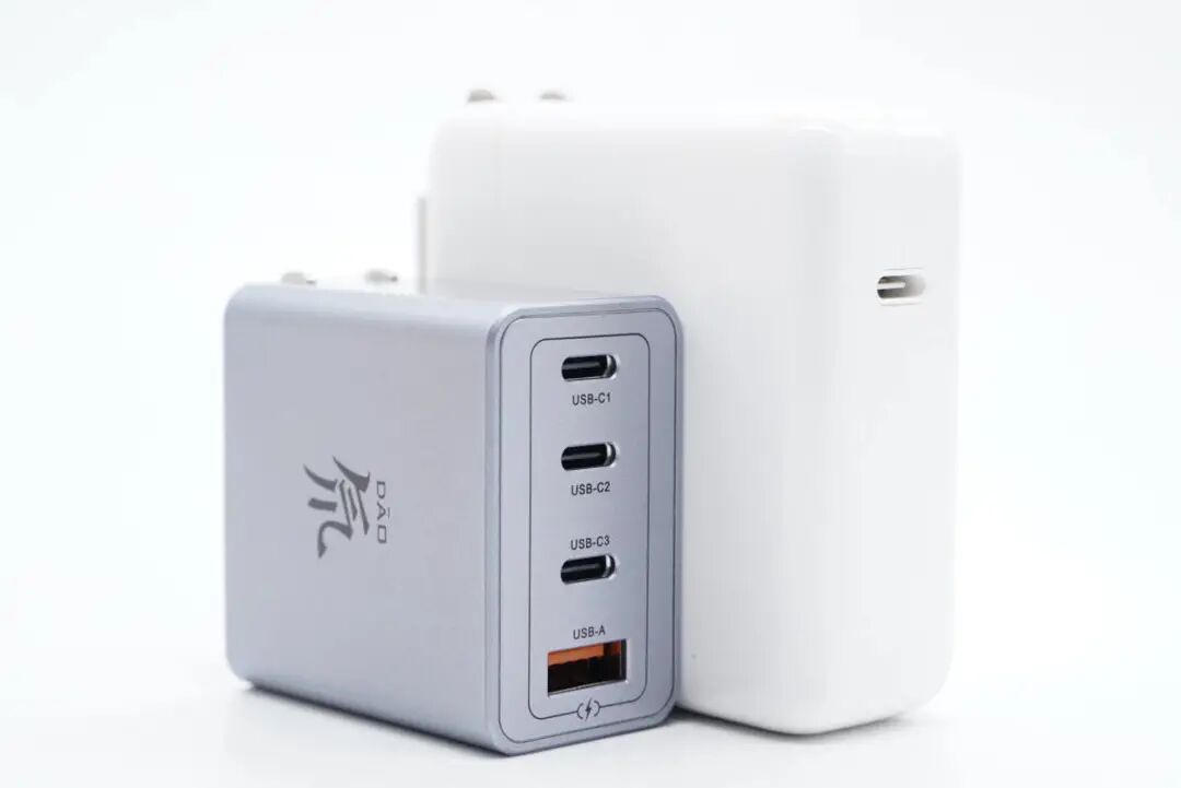 和苹果61W充电器对比,体积优势巨大。