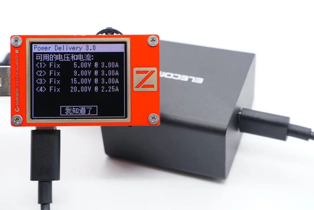 使用ChargerLAB POWER-Z KT002测得USB-C口仅支持PD3.0快充协议。