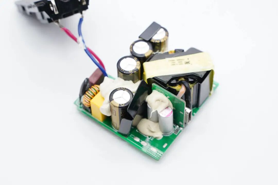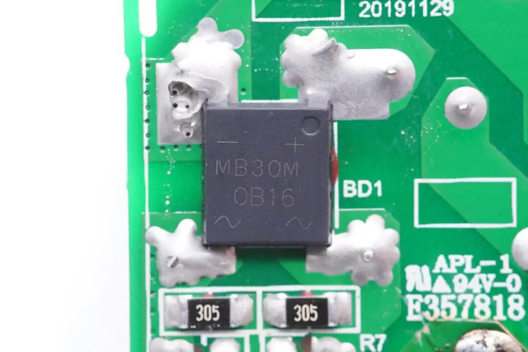 背面设有整流桥、开关电源主控芯片、同步整流管等。