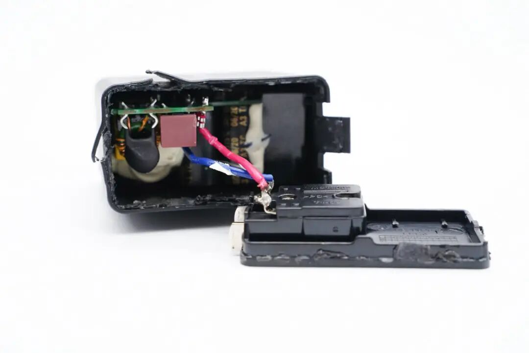 充电器主控芯片采用PI SC1933C,该芯片内置GaN功率器件,属于PI的PowiGaN系列,也是PI推出的首款GaN电源产品,支持宽输入范围下65W输出。得益于氮化镓功率器件高频率低损耗的优势,能够提高充电器的功率密度,减小体积和重量,更加便于携带。
