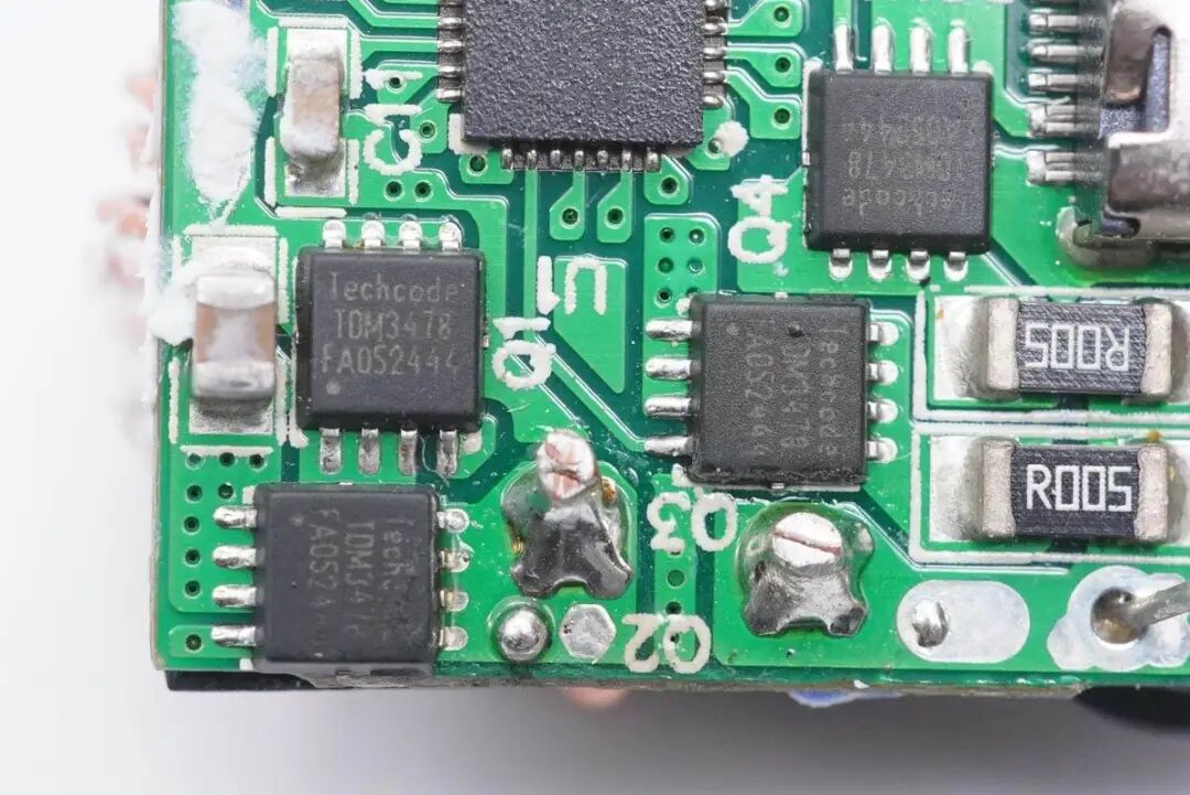 四颗泰德TDM3478 MOS管,其中两颗用于降压,一颗用作C3接口VBUS开关,还有一颗用于C3接口和A口的输出切换。