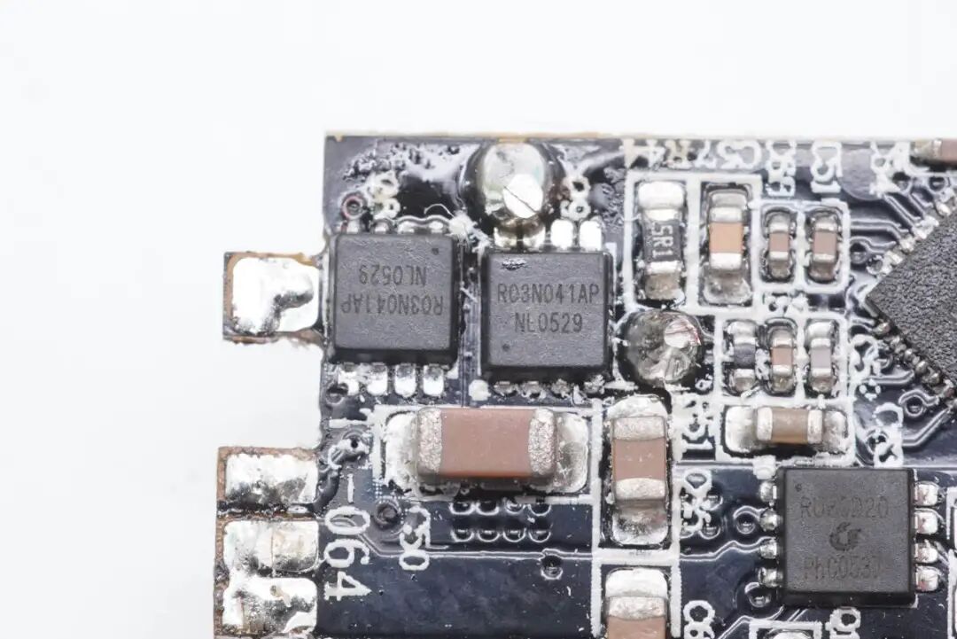 两颗锐骏MOS管用于搭配智融SW3516H实现降压功能。