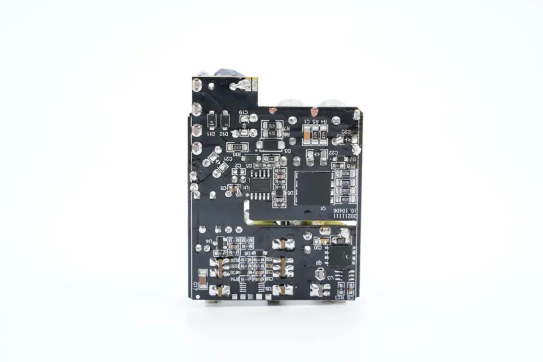 PCB板背面一览,设置了AC-DC开关电源控制电路,初级和次级之间采用镂空处理,加强绝缘性能。