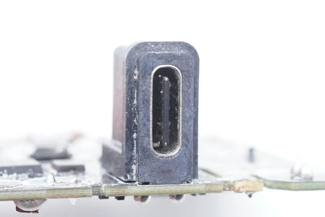 USB-C母座特写,采用黑色胶芯,外罩塑料外壳。