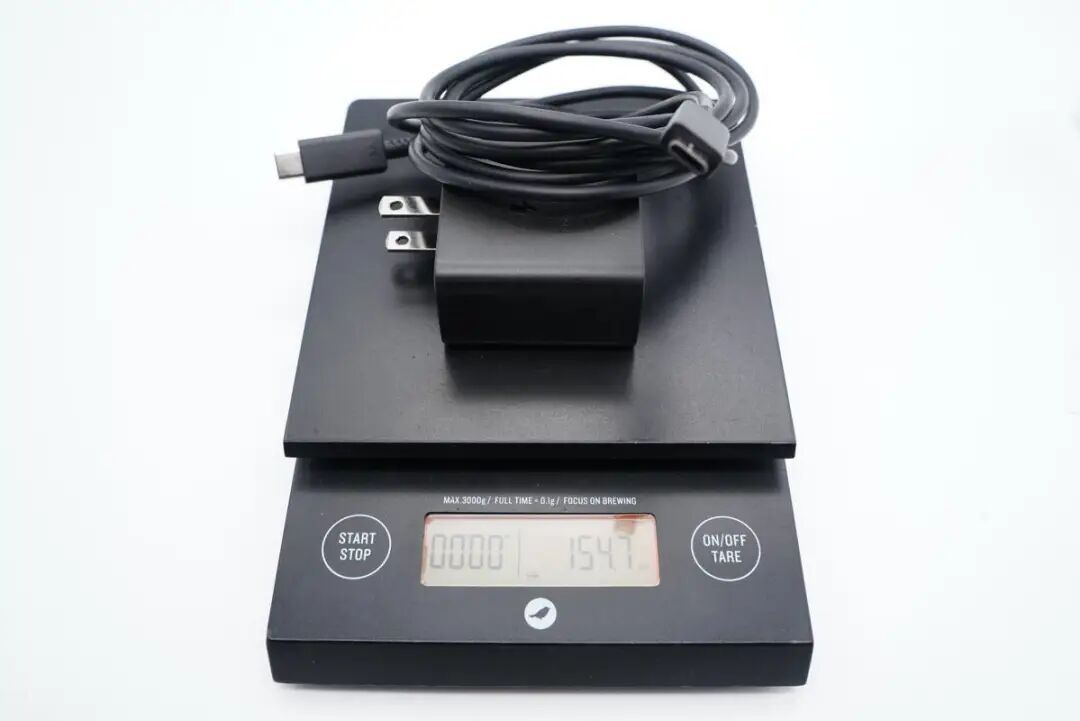 线缆的长度约为1.8米,符合充电器充笔电的定位。