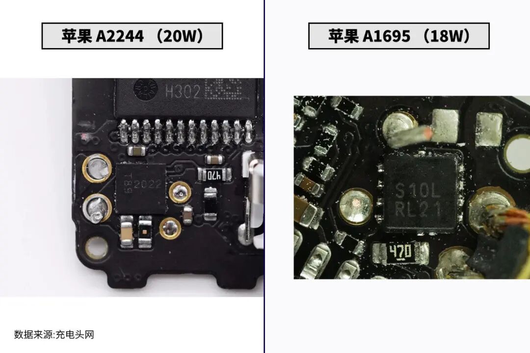 苹果20W充电器内置了CYPD2134协议芯片,属于CCG2系列,18W充电器内置CYPD3135,为CCG3系列,两款充电器的协议芯片均来自英飞凌。