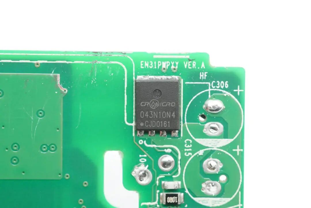 同步整流管来自华润微,CRSM043N10N4,NMOS,耐压100V,导阻3.8mΩ,采用DFN5*6封装。