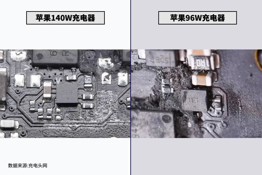 苹果140W充电器和96W充电器都配有单USB-C接口,都是采用独立模块设计。
