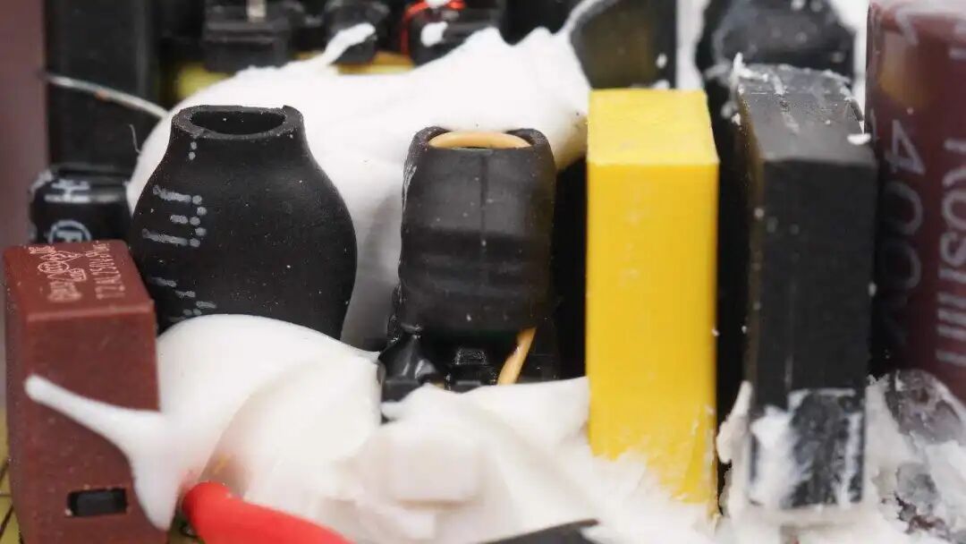 导线焊接处打胶加固绝缘。