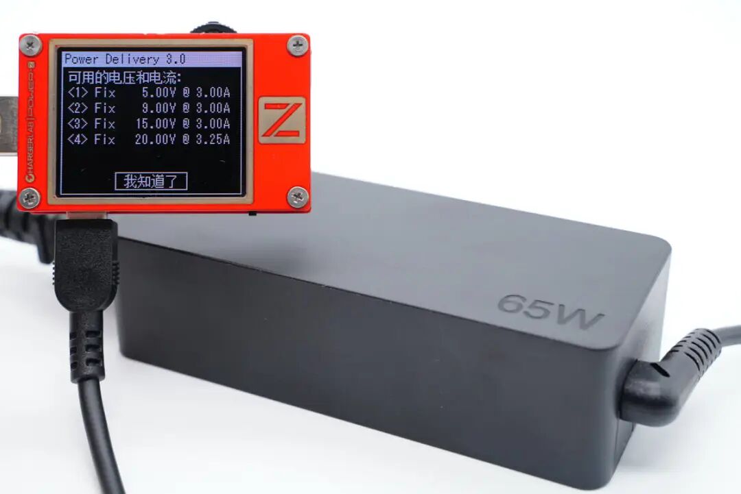 使用ChargerLAB POWER-Z KT002测得这款适配器仅支持PD3.0快充协议。