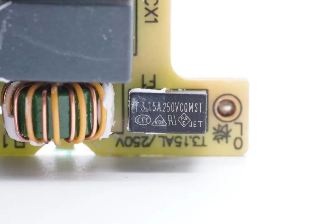 首先是充电器的输入部分,这部分由保险丝,EMI滤波电路,整流桥和滤波电容组成。输入端慢熔保险丝,规格为3.15A 250V,来自CONQUER功德,MST系列超小型延时保险丝。