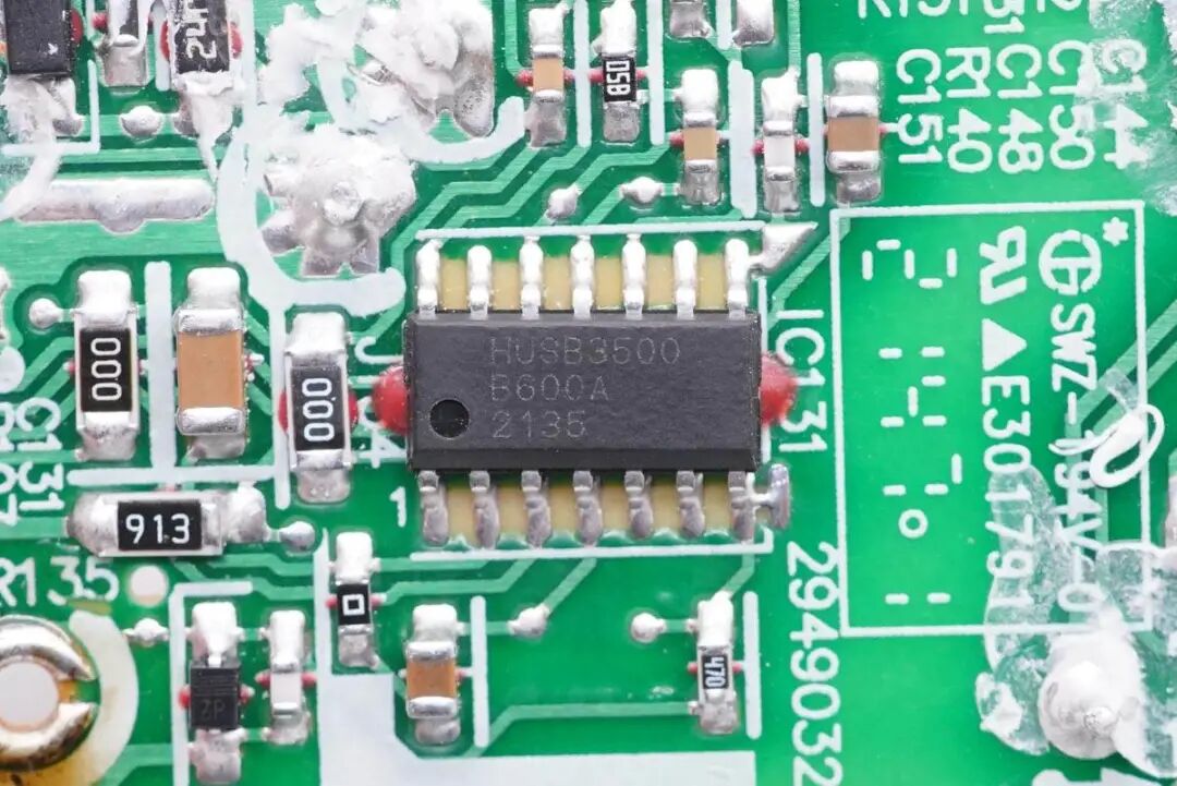 充电器内部的协议芯片使用慧能泰HUSB350,是一颗高性能高集成度的PD控制器,支持PD2.0、PD3.0、PPS、QC等多种快充协议,已通过USB PD PPS认证,TID 1508。芯片内置过热保护,过压和欠压保护,欠压闭锁和过流保护,CC引脚支持28V高压保护,适用于电源适配器、车载充电器、移动电源等应用场合,具备SOP14和QFN16两种封装。