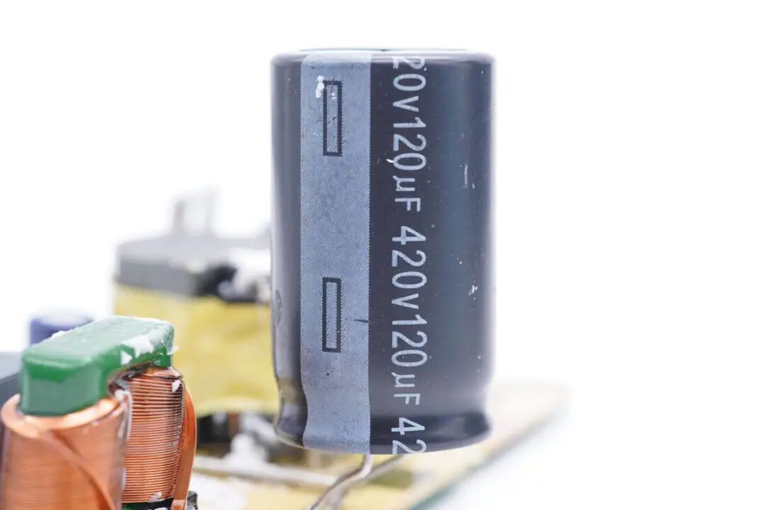初级滤波电容来自AiSHi艾华,RH系列105℃耐热,规格为420V120μF,卧置并打胶固定在电路板上。