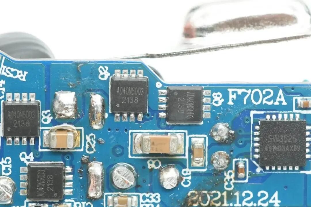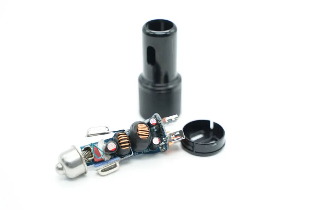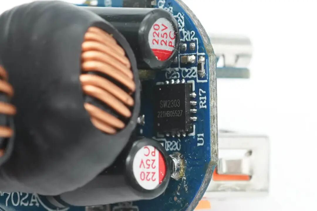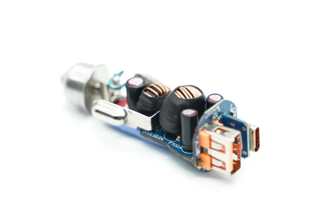 首先拆下车充输出接口的外壳,露出内部的PCBA模块。
