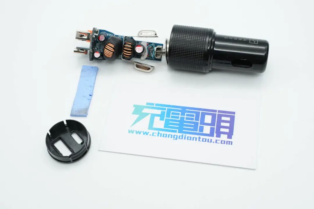 下面就对这款车充进行拆解,看看内部设计与做工如何,以及独立双口快充是怎么实现的。
