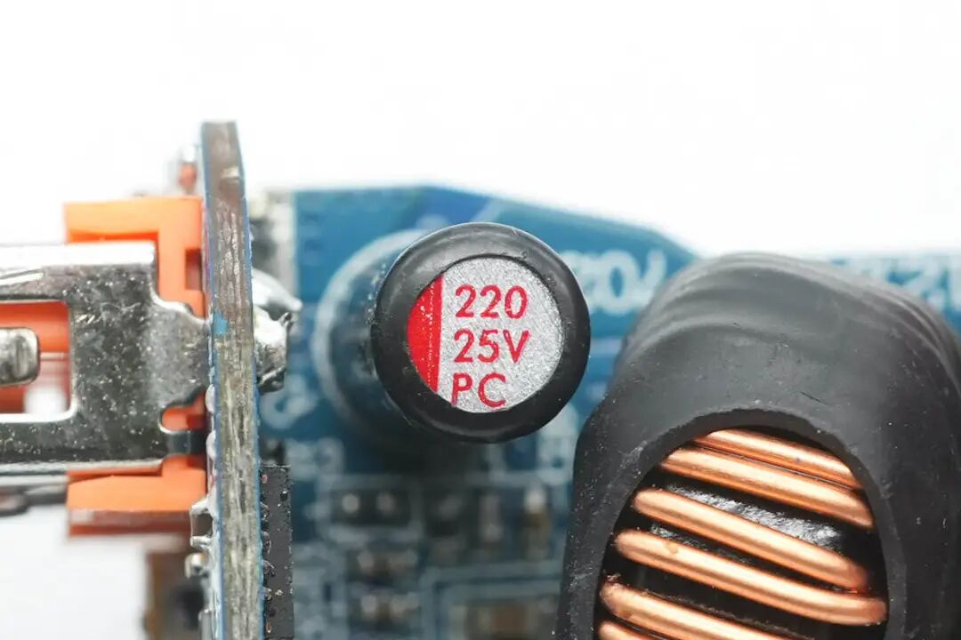 用于USB-C接口输出的滤波固态电容,规格为220μF 25V。