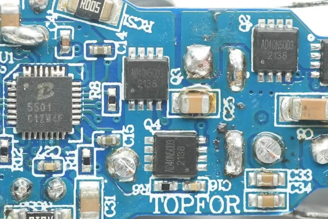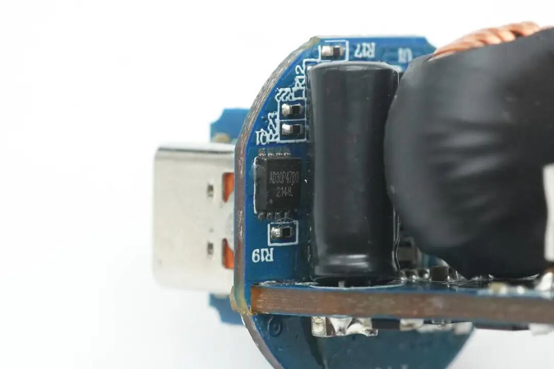 车充内部使用两块PCBA焊接组成,垂直小板焊接USB接口。
