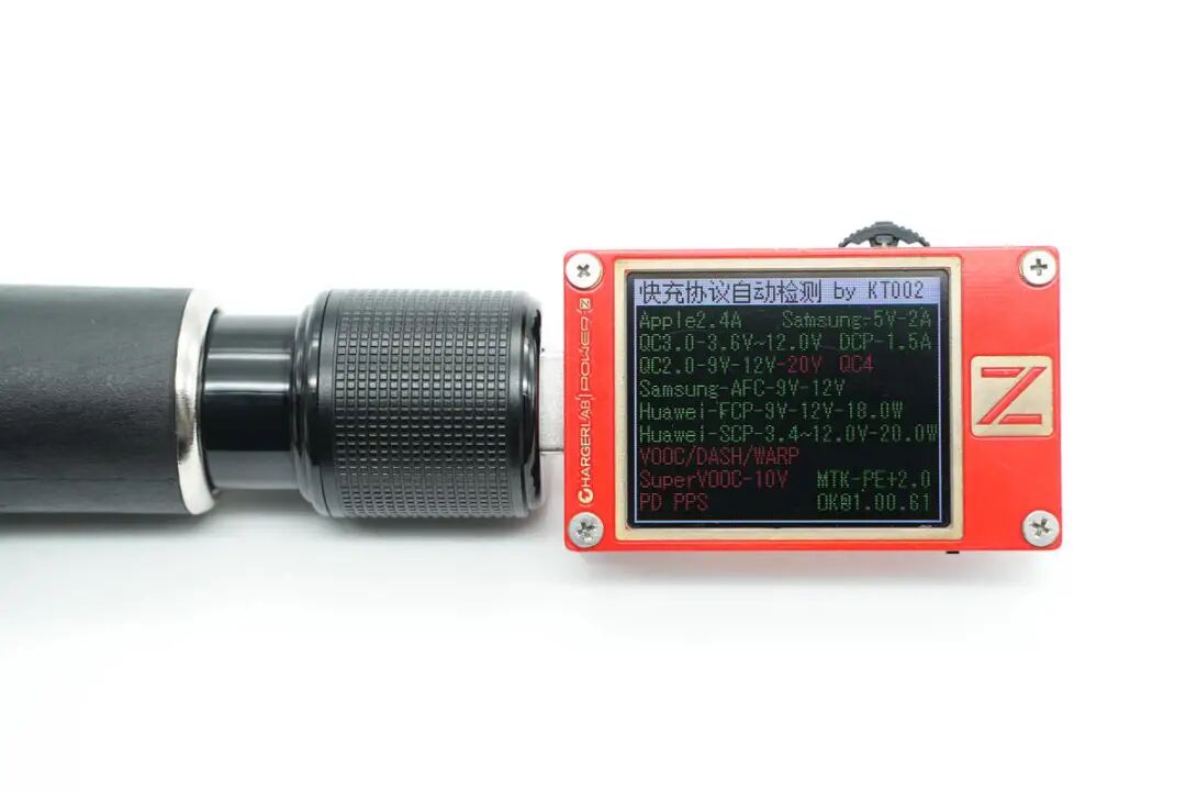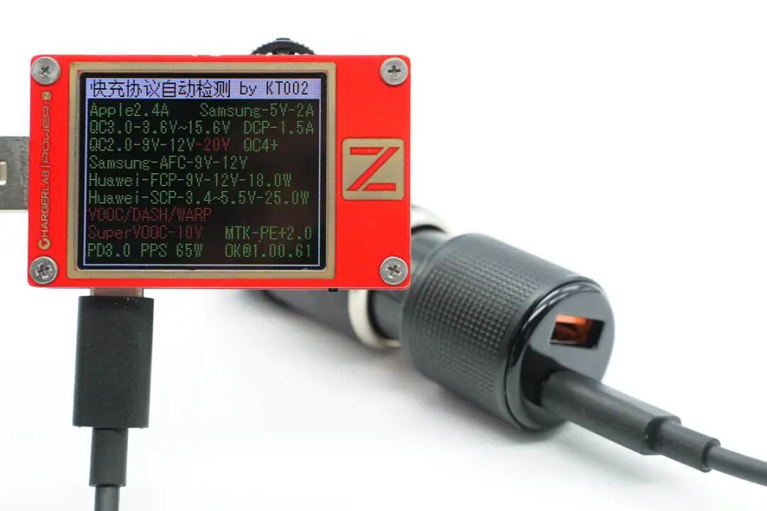 使用ChargerLAB POWER-Z KT002测得USB-A口支持Apple 2.4A、Samsung 5V2A、DCP协议,以及QC2.0/3.0、AFC、FCP、SCP、PE2.0快充协议。