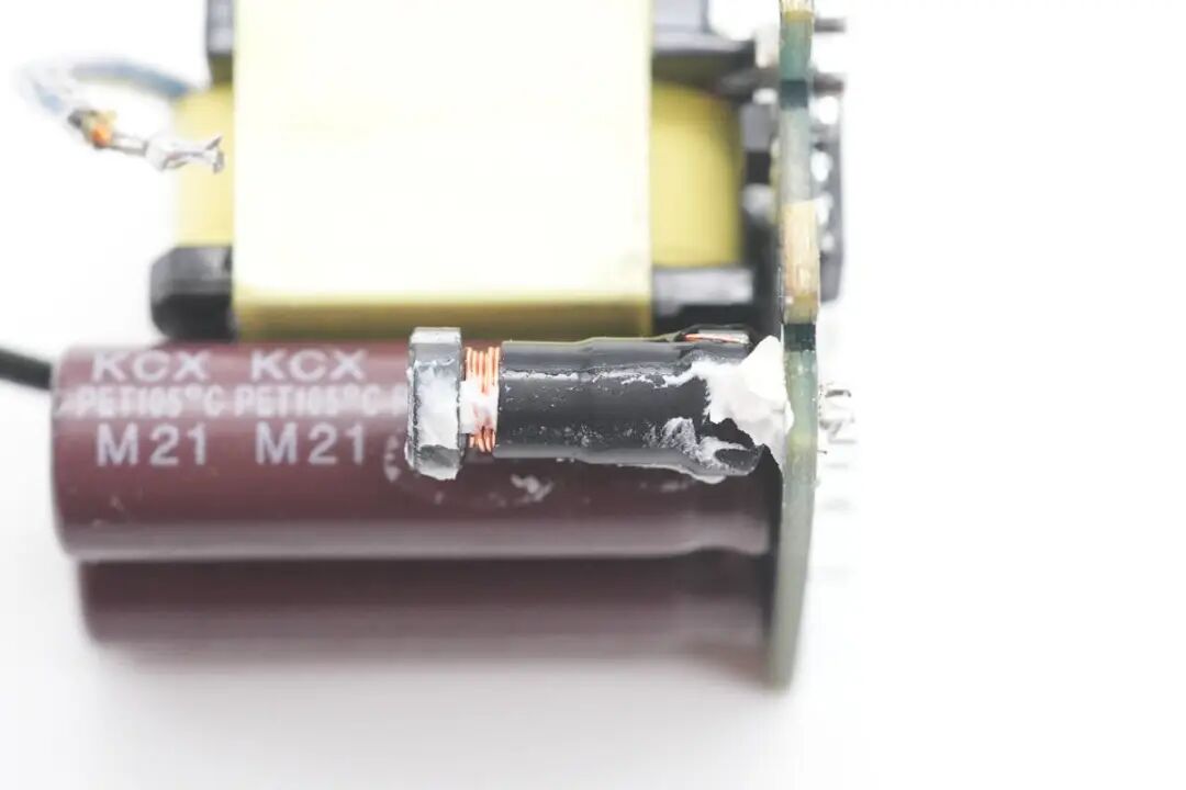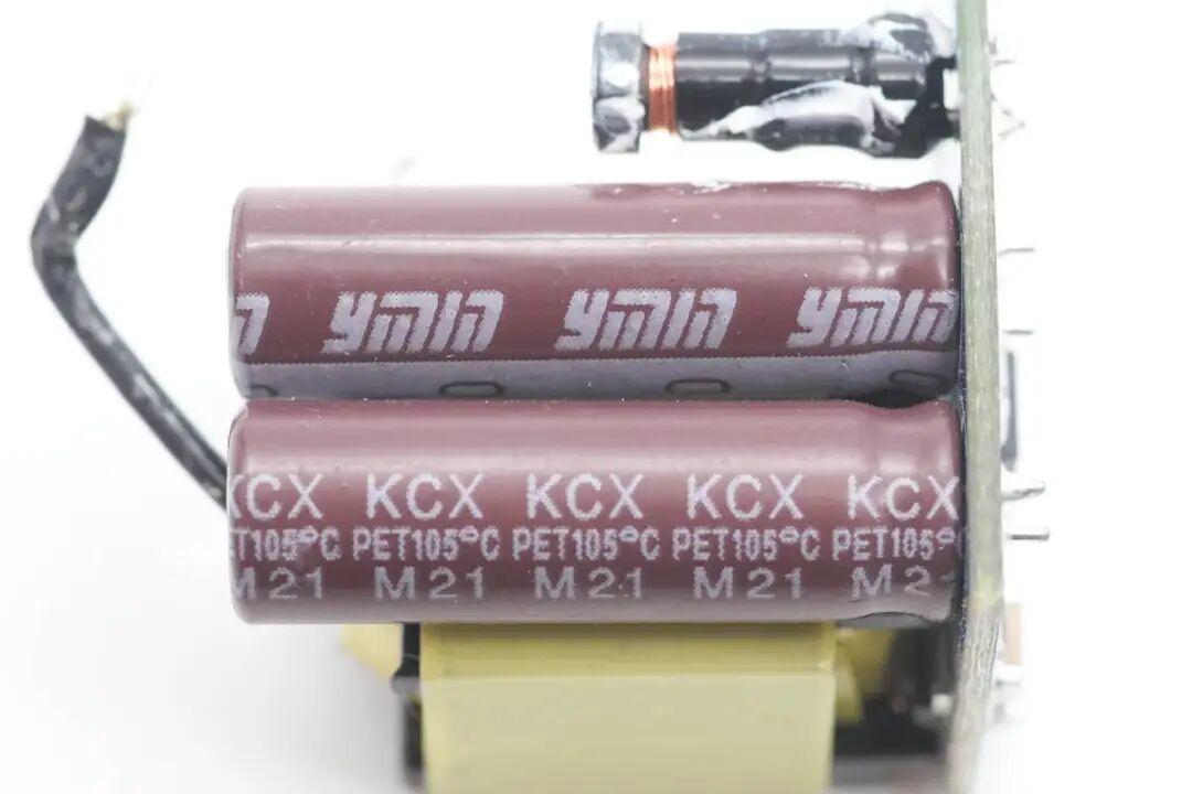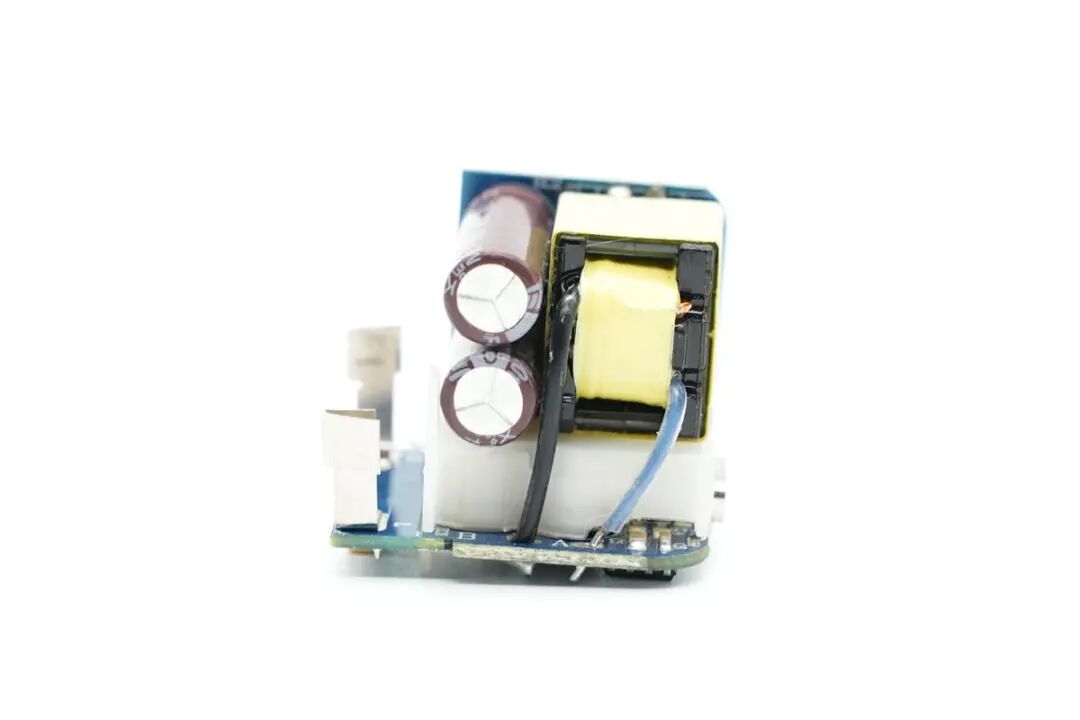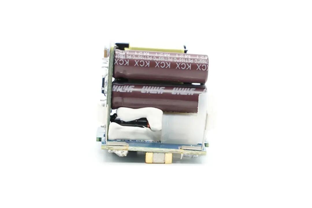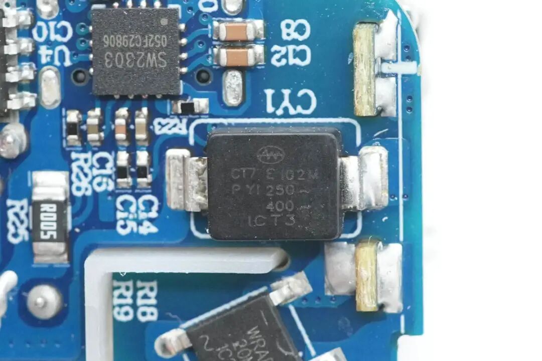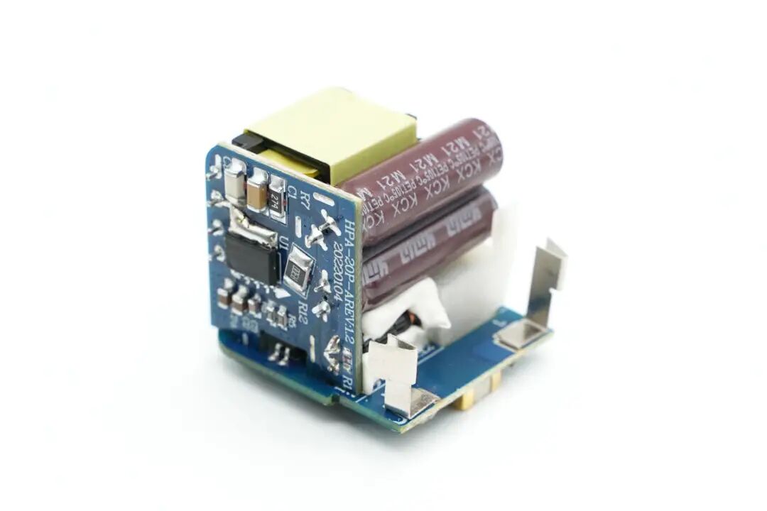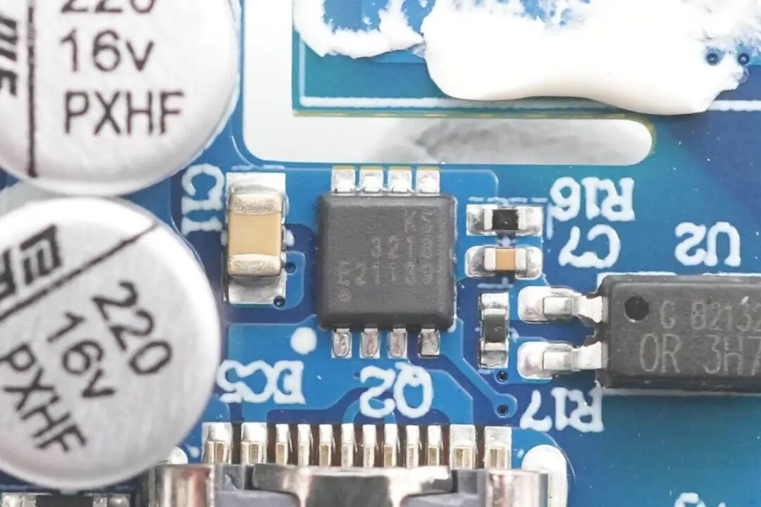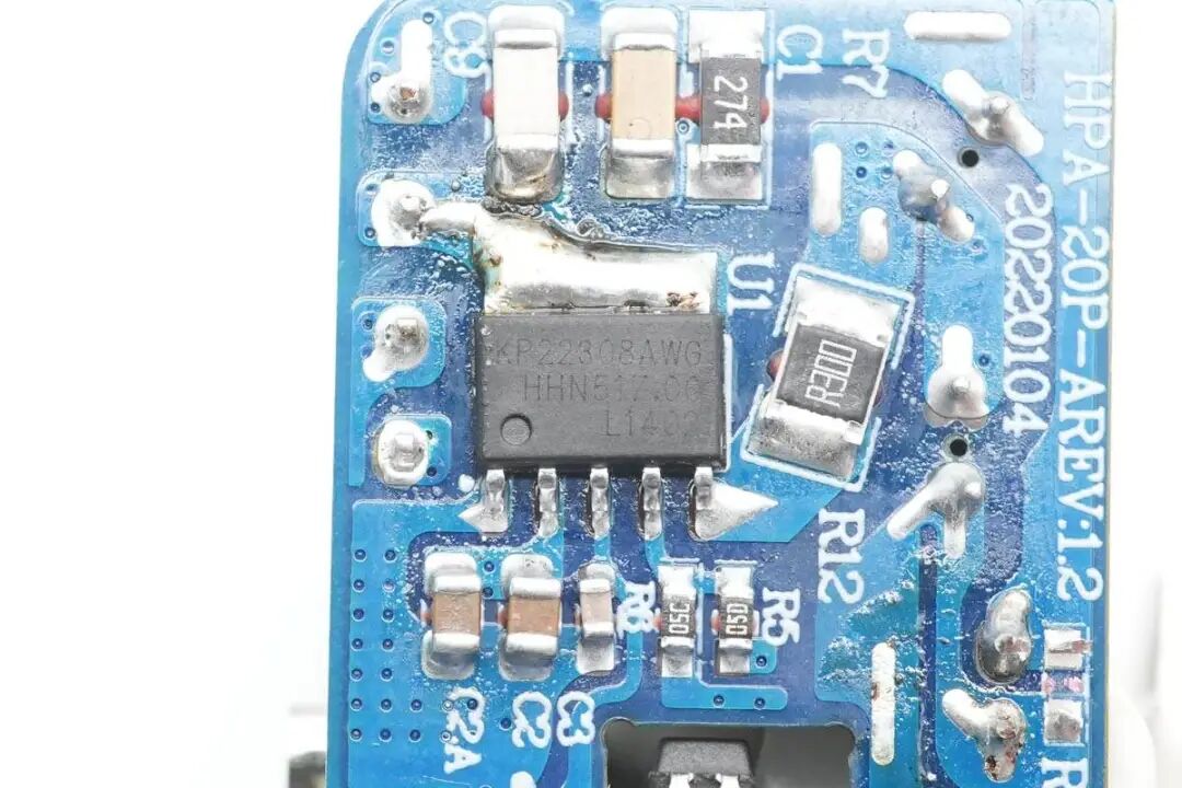 在了解了华科生20W迷你充电器的外观、性能之后,下面继续对其进行拆解,一起来看看用料做工如何。拆开外壳取出PCBA模块,接触式通电设计,插脚通过透明塑料壳固定绝缘,模块变压器上覆盖一块导热垫用于散热。底部小板背面设有贴片保险丝、整流桥、贴片Y电容、同步整流芯片以及协议芯片。整流桥来自深圳市沃尔德实业有限公司,型号WRABS20MG,是一颗具有高浪涌能力的软桥,这颗软桥具有更高浪涌特性和较软的恢复曲线,比较平滑的关断特性,可以降低二极管结电容达到非常少的谐波振荡产生的效果。两颗高压滤波电解电容均采用永铭KCX系列产品,该系列产品工作温度范围在-55℃~105℃,3000小时寿命,并具备抗雷击、低漏电流(低待机功耗)、高纹波电流、高频低阻抗等性能优势。开关电源主控芯片采用必易微KP22308A,这是一款针对离线式反激变换器的高性能准谐振电流模式PWM转换芯片。芯片内部集成高压启动电路,可以获得快速启动和超低待机性能;芯片支持8-40V的VDD供电,满足宽电压输出电源的要求。KP22308A内部具有高精度80KHz开关频率振荡器,且带有频率调制和电流峰值调制功能,优化EMI性能。芯片结合准谐振控制模式,绿色节能模式和打嗝模式,全范围优化效率,实现待机功耗小于30mW,满足六级能效要求。KP223XXWG集成有完备的保护功能,包括:VDD 欠压保护(UVLO)、VDD 过压保护 (VDD OVP)、输入欠压保护(Brownout)、输入过压保护(LOVP)、输出过压保护(OVP)、逐周期电流限制(OCP)、异常过流保护 (AOCP)、过载保护(OLP)、输出过流保护 (SOCP)、短路保护(SCP)、内置过热保护(OTP)、软启动、前沿消隐 (LEB) 等。独有的ASOP6封装实现了更好的散热性能。该系列产品使用不同的内置MOSFET,其中KP223315AWGA能够满足30W的快充需求,性能优,体积小。此外必易微还推出了KP22035产品,支持8~75V宽VDD电压范围,满足客户3.3~20V宽范围30W快充需求。将两块小板拆开,小板之间采用白色塑料支架绝缘及支撑。小板上设有光耦、两颗固态电容以及输出VBUS开关管,还设有输入端取电弹片。同步整流芯片采用必易微KP40562,是一款高性能副边同步整流功率开关,内置60V 同步整流管,可以取代传统肖特基二极管提高电源转换效率。KP40562支持高侧和低侧配置,内置VDD高压供电,无需辅助绕组供电。支持DCM/CCM和QR工作模式,内部集成智能开通检测功能,有效防止误开通。必易微 KP40562 采用SOP-8封装,适用于USB PD和电源适配器应用,支持4A输出电流,最高工作频率为300kHz,可与氮化镓芯片搭配使用。输出滤波电容采用永铭NPX系列固态电容,规格为220μF 16V,使用两颗并联滤波。SW2303集成了CV/CC控制环路,Type-C接口逻辑,快充协议控制器,以及多种安全保护功能。配合AC-DC或DC-DC以及少量的外围元器件,即可组成完整的高性能的Type-C/Type-A口快速充电解决方案。VBUS开关管来自冠禹,型号KS3218MB,是一颗耐压30V的NMOS管,导阻7mΩ,采用PDFN3333封装。USB-C母座特写,过孔焊接固定,黑色胶芯不露铜。HKS华科生这款20W充电器确实非常迷你,在配置了折叠插脚的前提下,外壳尺寸仅为30.5*33*33mm,非常小巧轻便,充电器支持QC、AFC、FCP、SCP、PE、PD和PPS主流快充协议,具备5-12V三档输出电压,以及3.3-5.9V3A、3.3-11V2.2A两组PPS电压档位,整体兼容性很好,性能实用。充电头网通过拆解了解到,充电器内部由两块小板组成,两块PCB之间使用塑料支架隔离绝缘。充电器使用必易微KP22308A初级主控芯片和KP40562同步整流芯片组成高集成快充方案,协议芯片采用智融SW2303。整体电路集成度高,有助于降低产品成本,实现充电器的小型化。