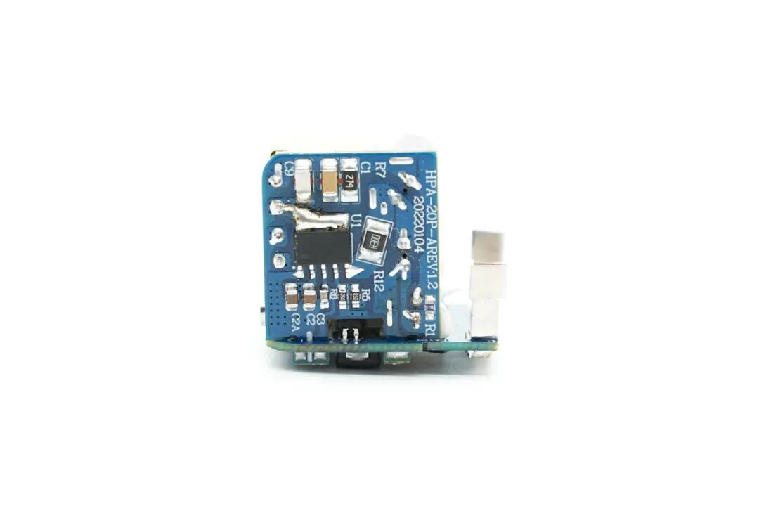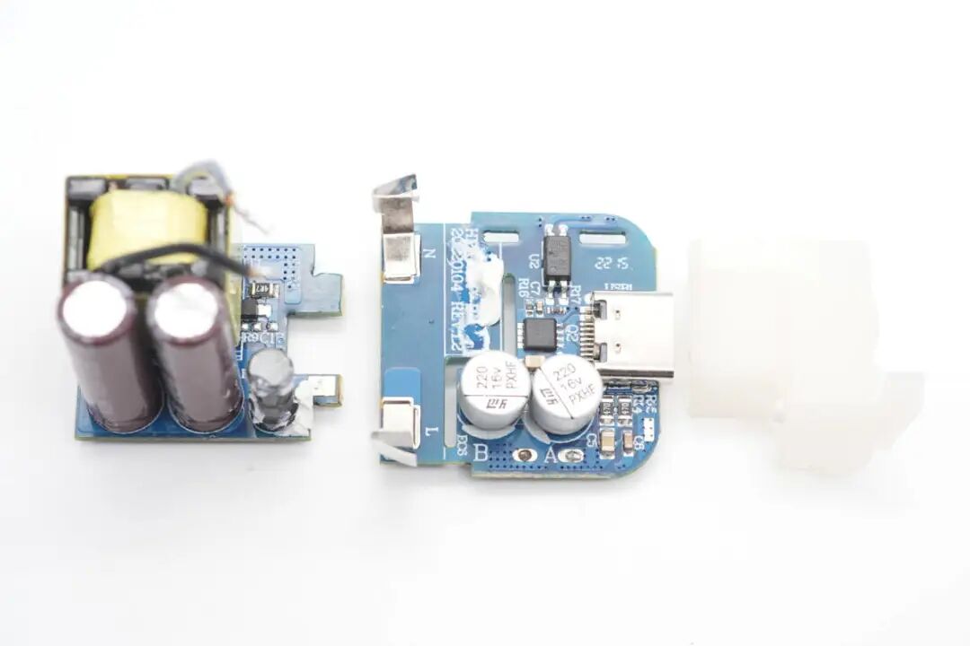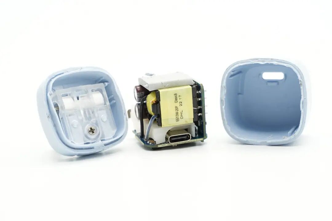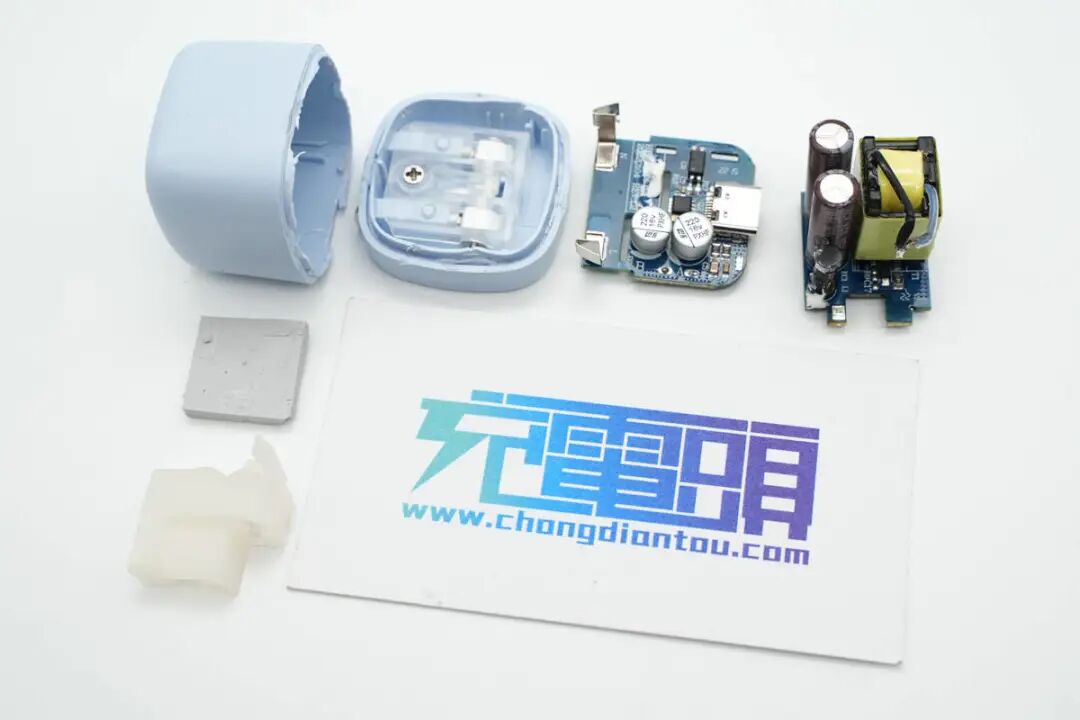 随着618各家电商大促,iPhone13售价屡创新低,而作为手机必备的充电器,随着手机的热销,销量也会显著提升。华科生推出了一款迷你小体积的20W快充充电器,采用折叠插脚,具备单USB-C输出接口,支持苹果20W快充,并支持PPS快充,对安卓手机快充也有很好的兼容性。充电头网已经拿到了这款20W迷你快充,下面就对这款充电器进行拆解,看看内部设计和用料如何。充电器采用远峰蓝色配色,外壳哑光处理,边角过渡圆润,充电器给人的第一印象是非常的小巧。输出:5V3A、9V2.22A、12V1.67A Max充电器配备可折叠国标插脚,携带方便且不会刮伤包里其它设备。顶部外壳印有20W字样,USB-C接口靠边缘布局,黑色胶芯不露铜。并且还具备5V3A、9V2.22A、12V1.67A三组固定电压档位,以及3.3-5.9V3A、3.3-11V2.2A两组PPS电压档位。