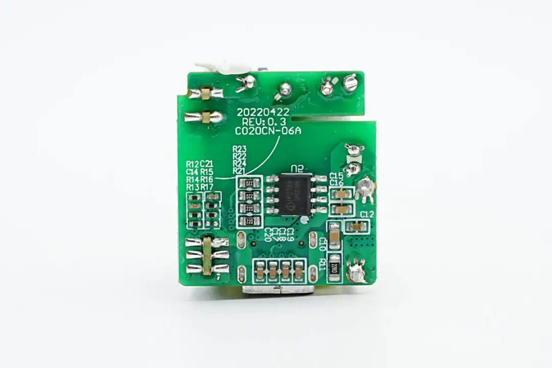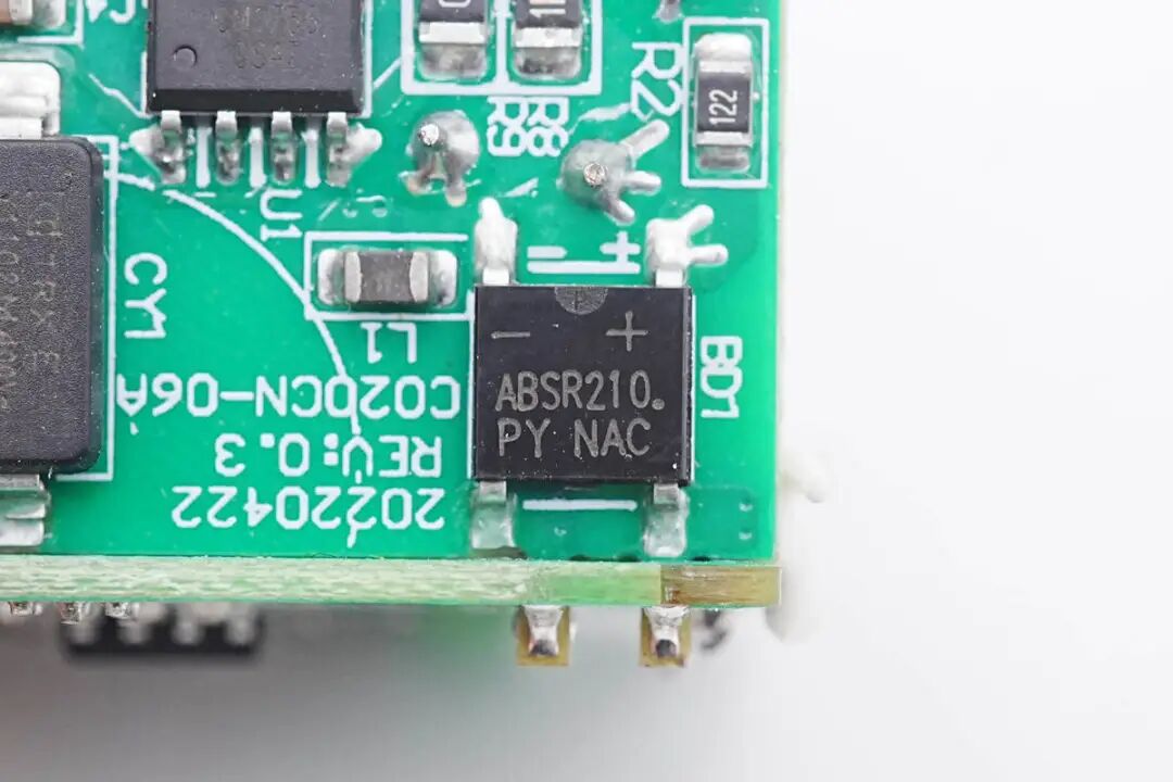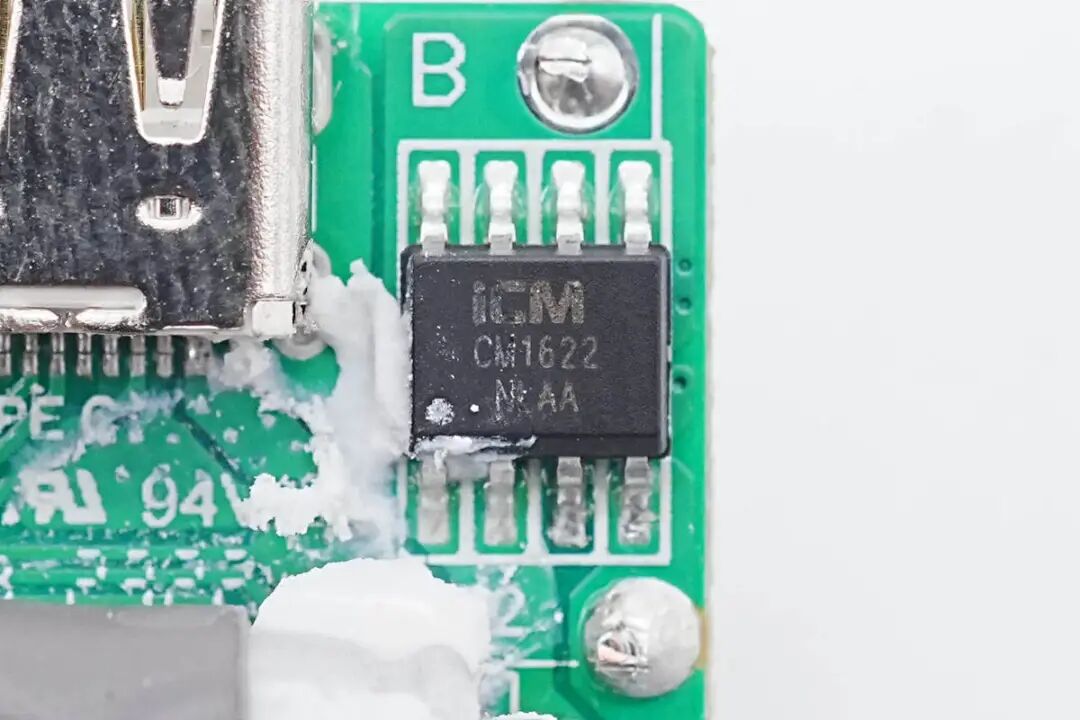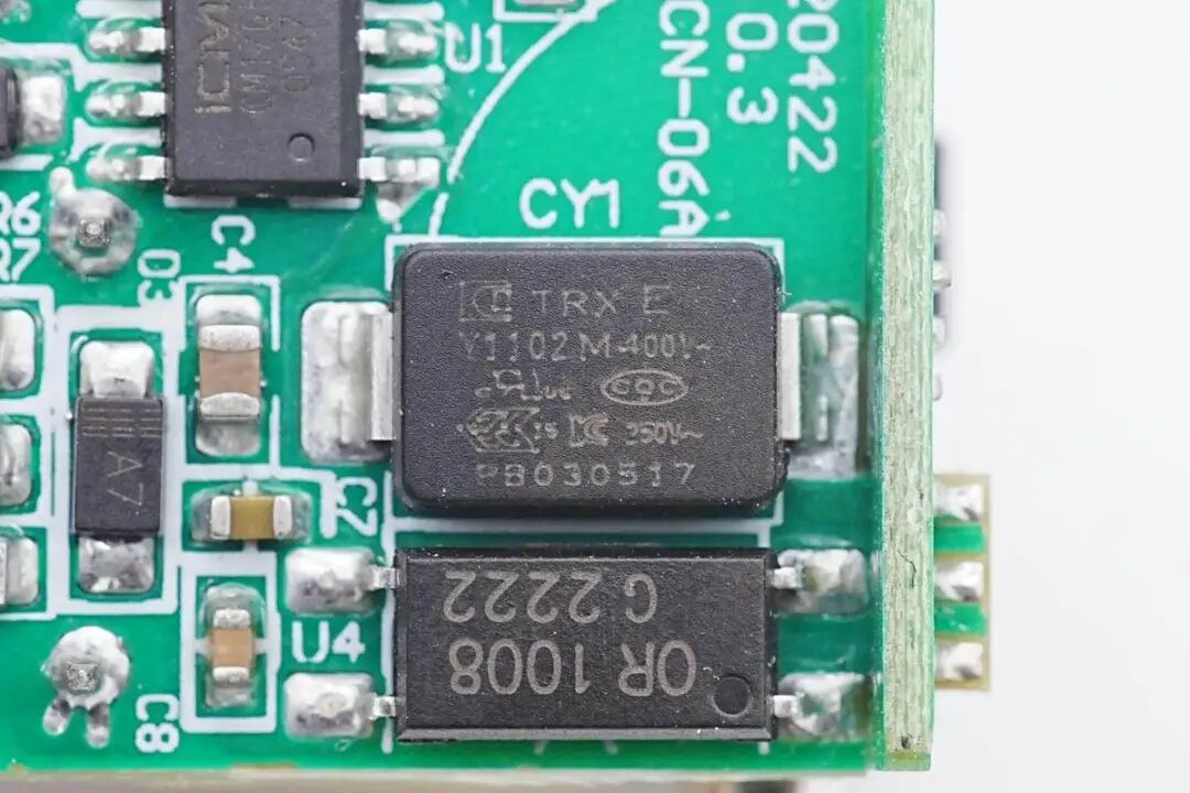 看完了这款充电器的开箱和测试,下面就对充电器进行拆解,看看内部设计和用料。沿插脚侧外壳接缝拆开外壳,充电器内部PCBA模块采用两块小板焊接组合而成。使用游标卡尺测得PCBA模块长度约为26.17mm。PCBA模块采用两块小板焊接组合而成,在两块小板之间的空间内部放置变压器,高压滤波电容等元件,充分利用内部空间。侧面小板焊接整流桥,初级电源芯片,光耦和贴片Y电容。侧面可以看到初次级之间的元件外套胶套绝缘,并涂胶固定。焊接拆分两块小板,侧面的小板上焊接高压滤波电解电容,差模电感,变压器,底部的小板上焊接保险丝,输出滤波固态电容,同步整流芯片和USB-C母座。整流桥来自平伟,型号ABSR210,是一颗快恢复整流桥,规格为2A 1000V。两颗高压滤波电容均来自凯泽鑫,规格为15μF400V。充电器的PWM主控芯片采用创芯微CM1765,这是一款多模式控制的高性能 SSR 电源芯片,内置 650V 功率 MOSFET,可用于 20W 以内的离线式开关电源产品。CM1765 可根据输入电压,输出电压以及负载的不同控制系统工作在 PWM,PFM,以及 Burst 模式,以实现全电压范围,全负载段的效率最优。芯片内置了专利的抖频技术和调频控制技术,简化系统 EMI 设计。CM1765 内置了大量的补偿以及保护功能,如输入电压补偿,电感补偿,斜坡补偿,过流保护,过载保护,VDD 过压保护,过温保护等,从而简化了外围电路,利于 PCB 布局及 EMI 设计,提高了方案的可靠性和安全性,降低了方案成本。贴片Y电容来自四川特锐祥科技股份有限公司,具有体积小、重量轻等特色,非常适合应用于氮化镓快充这类高密度电源产品中。料号为TMY1102M。特锐祥专注于被动元器件的研发、生产及销售,注册资本1亿元。旗下有自主电容品牌两类:SMD TRX及DIP TY电容器,TRX将致力于陶瓷材料的研究,以拓展更多品类的应用,为客户提供更多的解决方案。底部小板焊接输出滤波电容,同步整流芯片和输出USB-C母座。滤波电容采用胶套绝缘,并打胶固定。充电器同步整流芯片采用创芯微CM1622,用于替代反激式开关电源次级整流二极管,以减少整流损耗,提高系统能效。该芯片能够在 CCM、DCM、QR 等多种模式下工作,高度集成,基本无需多余外围元器件即可实现同步整流功能,从而简化了 PCB 设计,降低了 BOM 成本。创芯微CM1622集成交流供电,可支持 3V~12V 的宽输出电压范围,适用于快充应用,并且既可支持负端整流,也可支持正端整流,以满足客户的不同需求。输出滤波电容来自PolyCap柏瑞凯,RN系列是小型化、超低ESR的固态电容,规格为560μF 16V,RN系列非常适合应用于小型化快充的次级输出滤波电路。英集芯IP2189是一款内置路径功率管,用于USB PD快充的协议芯片,支持自动检测设备的插入和拔出,并支持轻载检测,自动进入待机状态降低功耗。芯片支持20W输出控制,并支持多颗芯片实现多口快充输出管理,芯片内部集成OTP过热保护,支持输出过流和输入过压保护,支持数据引脚过压保护,适用于适配器和车充应用。英集芯IP2189采用ESOP8封装,协议支持广泛,并通过了USB PD3.0认证,认证TID号:6173。输出USB-C母座特写,过孔焊接固定,白色胶芯不露铜。罗马仕推出的这款20W迷你快充小巧便携,并具有多种配色选择,简洁时尚。充电器具备单USB-C输出,9V 2.22A,20W输出功率满足苹果手机快充,为消费者带来更多选择。得益于充电器内部使用了高集成的快充方案,再搭配PolyCap柏瑞凯RN系列小型化、超低ESR的固态电容,为次级输出滤波电路提供良好的滤波效果,20W输出功率与5W充电器体积相仿,体积优势十分明显。充电头网通过拆解了解到,罗马仕20W PD快充内置创芯微CM1765+CM1622高集成开关电源方案,两颗芯片均内置MOS管,大大简化了充电器电路设计。输出协议芯片采用英集芯IP2189,支持多种快充协议。创芯微推出的高集成开关电源芯片,功能齐全,集成度高,优化了小体积快充电源设计,降低物料及研发成本,提升产品整体竞争力。