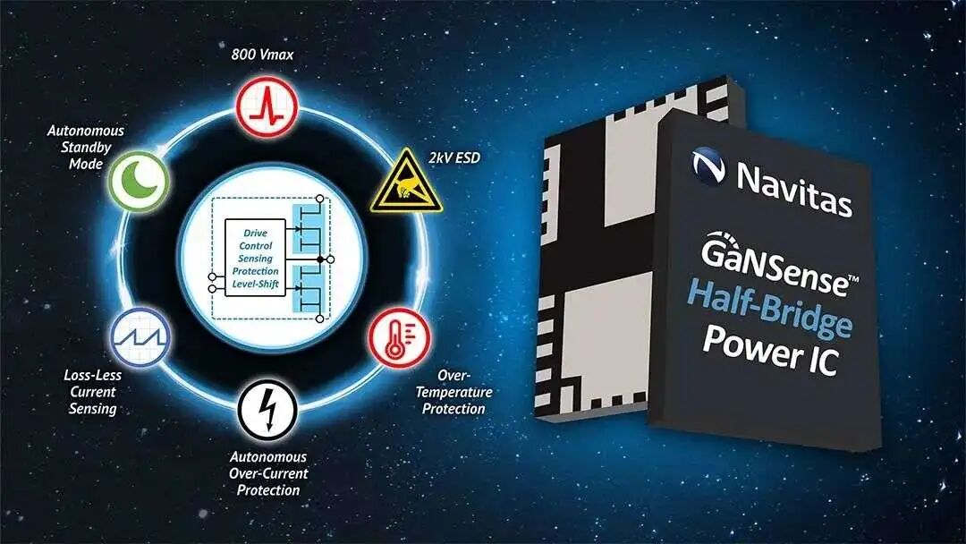 下一代功率半导体公司及氮化镓功率芯片行业领导者——Navitas 纳微半导体(纳斯达克股票代码:NVTS),在2022年9月7日率先发布了 GaNSense 半桥氮化镓功率芯片。相比于现有的分立式方案,半桥功率芯片可实现 MHz 级的开关频率,将有效降低系统损耗和复杂度。