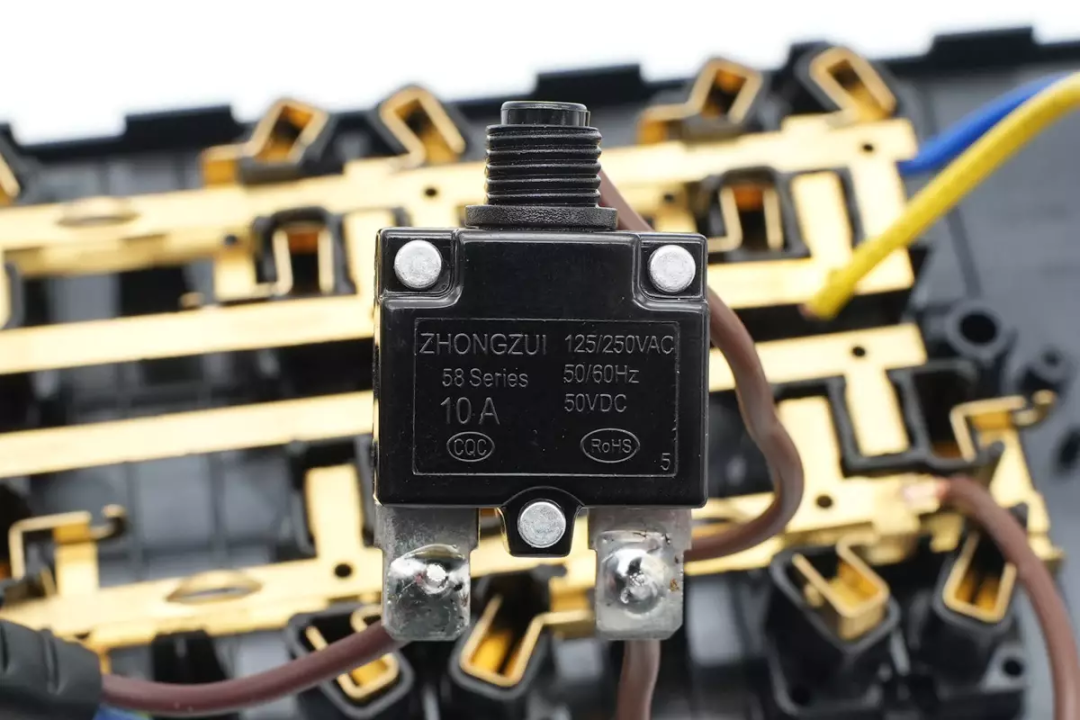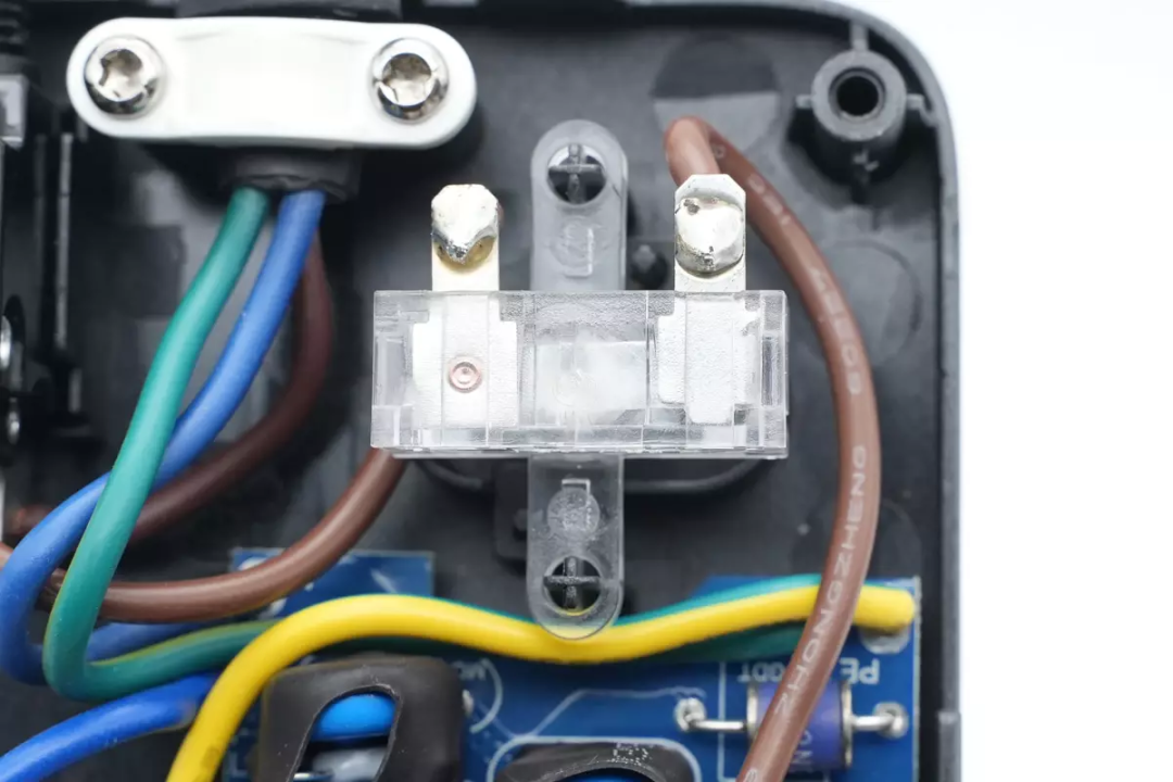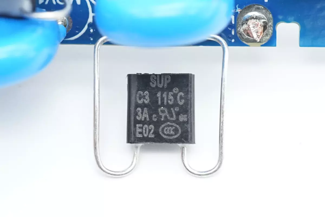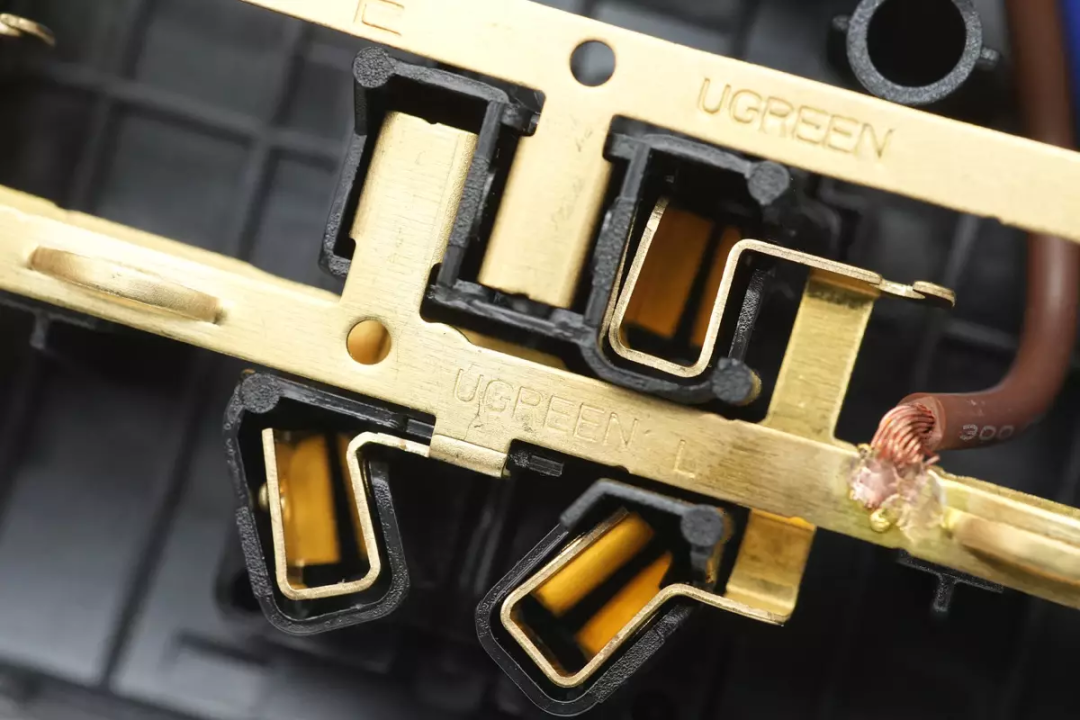 看完了绿联这款插座的开箱和展示,下面就进行拆解,一起看看内部的用料和设计。拧下所有固定螺丝,拆开外壳,插座内部为一体铜条结构,电源线焊接连接。插座内部结构一览,左侧为电源开关,过载保护器和浪涌吸收器件,右侧为一体铜带的插座模块。壳体内部对应开关和插座模块开有支撑条,起到固定作用。导线输入端采用螺丝和压板固定,火线导线首先焊接到过载保护器上。过载保护器来自中最电器,为58系列小型电流过载保护器,额定电流10A,额定电压125/250VAC,50VDC,用于插座过载保护。火线经过过载保护器,焊接连接到开关上,开关通过壳体固定。拧下螺丝取下浪涌吸收小板,小板背面对应壳体的位置设有导光塑料,用于指示灯透光。浪涌吸收小板正面焊接压敏电阻和温度保险丝,右侧焊接放电管。压敏电阻和温度保险丝采用热缩管固定在一起,能够精确的检测压敏电阻温度,进行过热保护。压敏电阻来自厦门华信安,丝印V-511K-10E,为氧化锌压敏电阻,用于雷击过压保护。夹在两个压敏电阻中间的温度保险丝来自SUP肃菲,C3系列,动作温度115℃,额定电流3A。插座内部一体铜条特写,冲压弯折成型,并通过导线焊接连接。插座铜带冲压UGREEN及L字样,表示火线,右侧导线采用超声波焊接。绿联推出的新国标延长线插座具备1.8米长线缆,线缆截面积为3*1.0mm²,插座具备八个新国标五孔插孔,并具备总控开关。插座内部集成抗电涌电路,能够吸收雷击浪涌,防止过压损坏电器。并配有指示灯进行功能指示,实时了解安全功能状态。插座还配有过载保护器,能够在负载超过插座功率时切断电源,保证用电安全。充电头网通过拆解了解到,绿联这款延长线插座内部采用一体铜带,导线焊接连接开关和过载保护器,并通过碰焊与一体铜带连接,接触电阻更低。内部浪涌保护电路采用压敏电阻与温度保险丝串联,采用热缩管固定,温度检测灵敏,还内置气体放电管,提供加强的浪涌保护。这款插座提供过电压和过流保护,并配有安全门,是一款安全防护等级很高的插座。