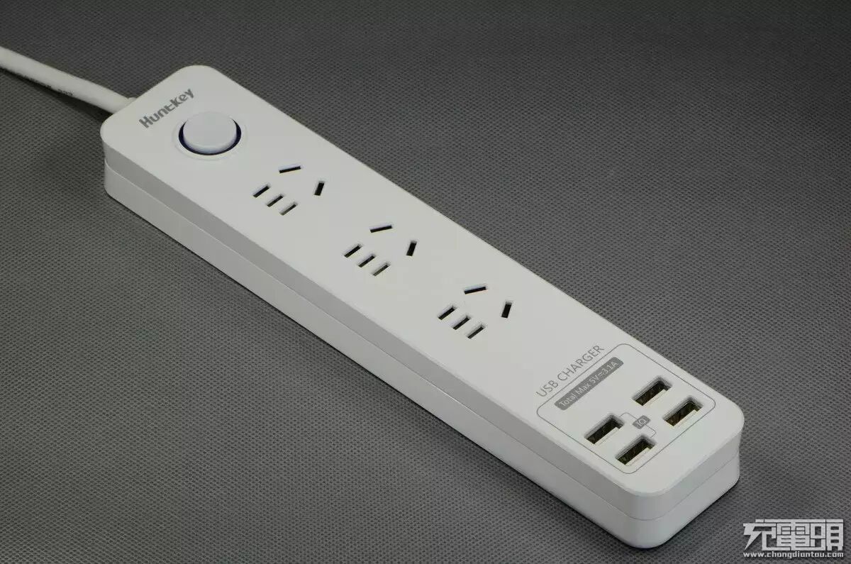 最下面是 4 个 USB 口,联合输出是 3.1A。左边两个是 IQ 口,也就是智能识别口,究竟有没有智能识别呢?这个还要看拆解,另外连个口是什么识别呢?这个也要看拆解。三个 AC 插座,并不兼容德标,可是最新的国标可是兼容德标的,这个让人无法理解。