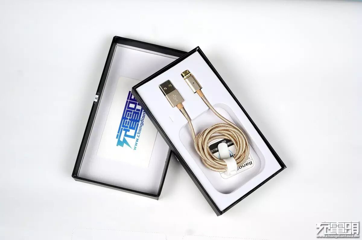 总结:作为第一次使用磁吸线的小编,整整把玩了一个小时。在手机上插好分体头放在桌面上,拿着线缆磁吸座各种甩过去都可以准确吸附完全不用管他,自己就准确命中扭转好位置瞬间对接,或者是拿手机随意靠近磁吸座,也是全自动的跑过来找准位置瞬间秒插简直神奇。但是由于磁吸接触产生好几次接触电阻的关系,所以相比传统插拔方式线材来说整体压降会大一点,如果你使用的是带有快充功能的手机就不必担心这个问题,不支持快充也不怕,祭一个带线损可抵消压降的大猪头\note3头放在家里可保平安。当然,你非要找不足的话还是有的,就是不能放包里使用,狭窄空间他就断开连接了。