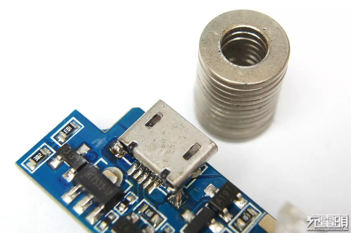 USB插件的磁吸性测试,MciroUSB 座无磁吸反应,大USB座有磁吸反应。