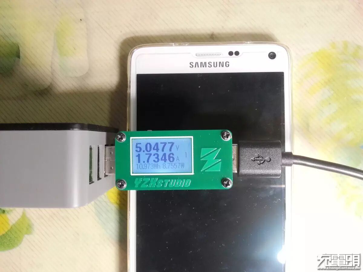 3、普通USB口给三星NOTE4手机充电,正常识别,达到5v充电的正常速度。