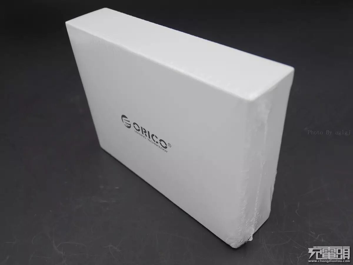 充电器正面面板为黑色,印有ORICO的标志,在标志下方有一个小圆孔,为电源工作指示灯。