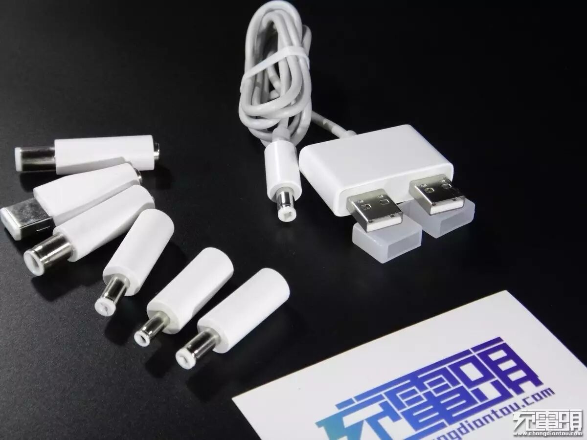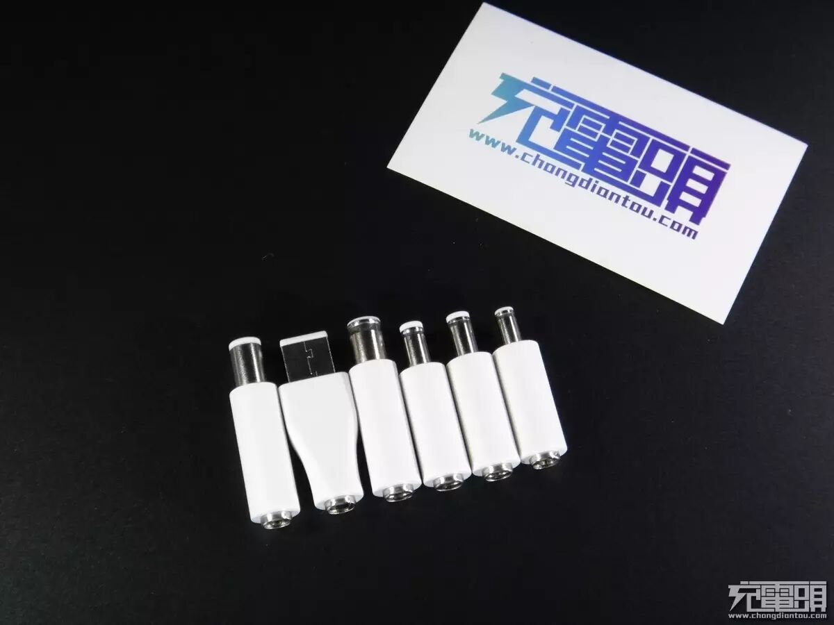 接着是配合双U线使用的6个转换头,可以适配各种笔记本的电源接口。