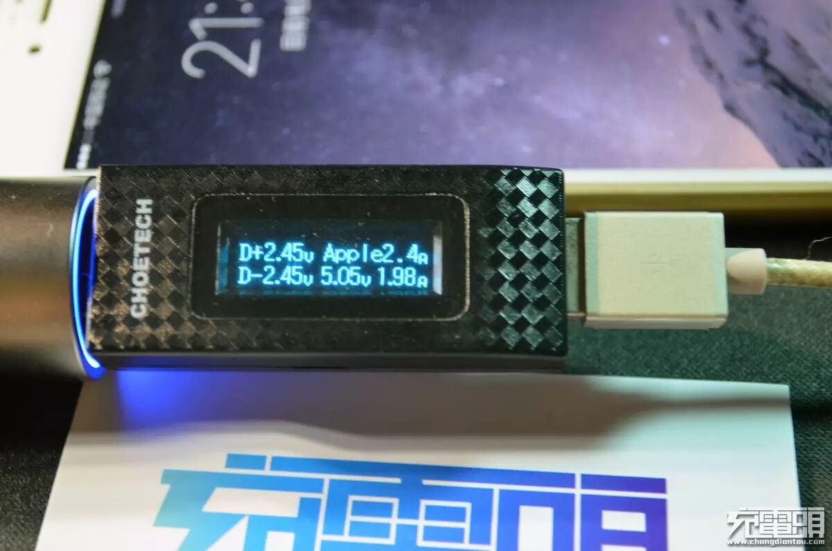 充iphone6Plus,剩余电量37%,1.98A@5.05V,满速充电。