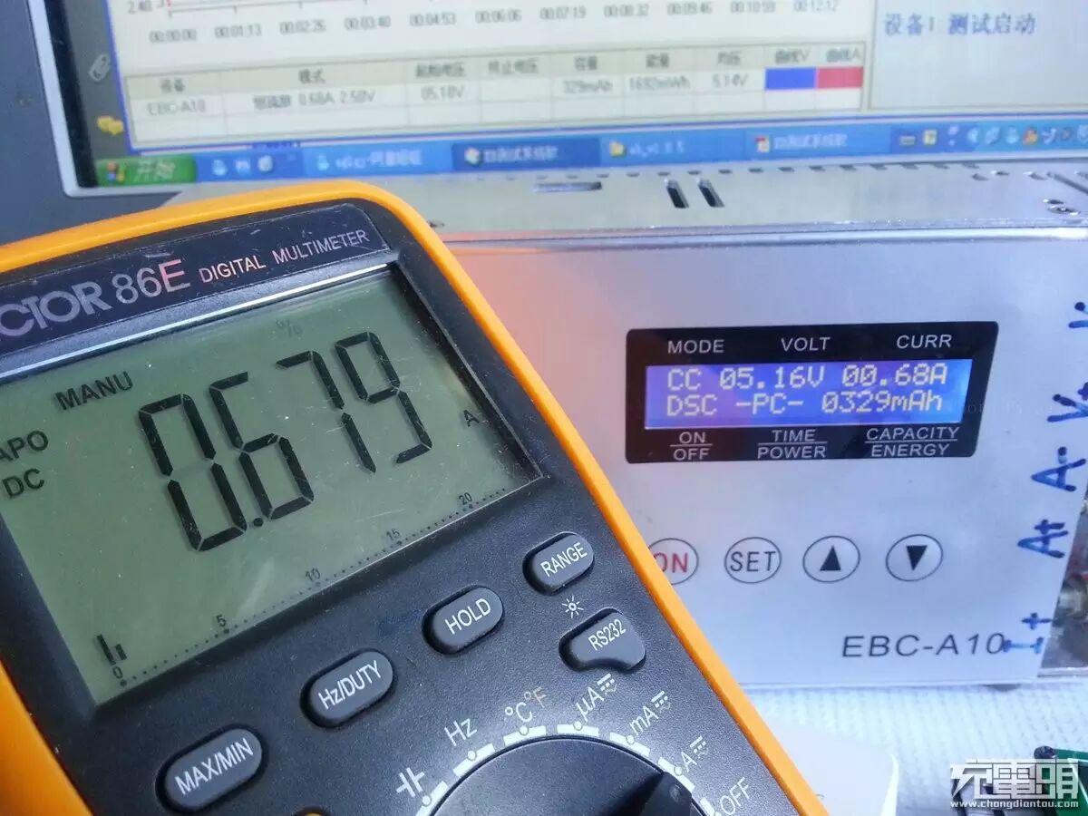 编号5的3400mAh电池0.2C放电只容量为2816mAh,编号6的3400mAh电池0.2C放电只容量为2945mAh,与标称容量相差较大。讨论组的伙伴测试的结果是接近3400mAh,于是严重怀疑我的测试仪器有较大偏差,用仪器对比A10的测试数值,发现真的有了偏差,得校准。由于仪器偏差的问题,白白多花费了20多个小时的测试时间(0.2C要5小时测试一节电池)。