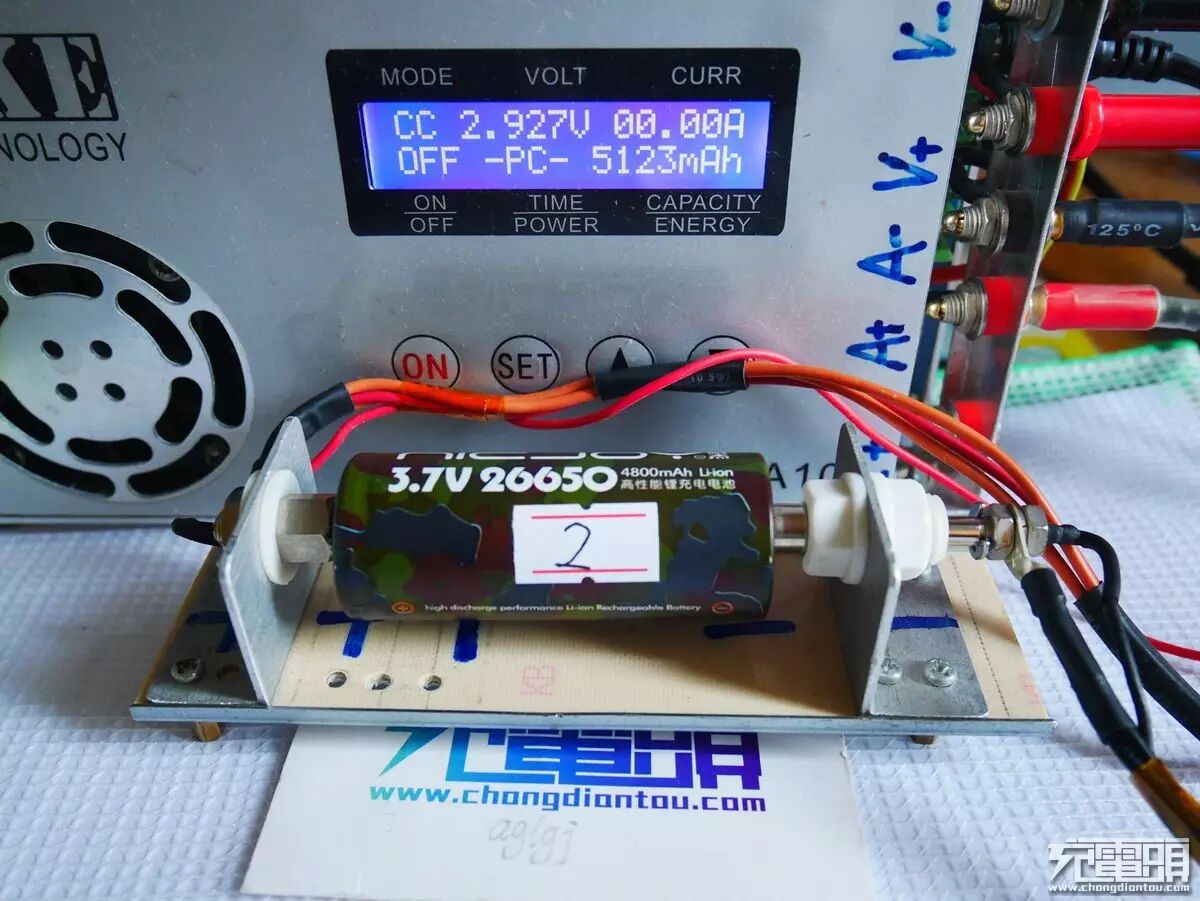2、2号26650(4800mAh)锂电10A放电容量:5123mAh ,17.45Wh,均压3.41V,实测电池容量超出标称的4800mAh 。