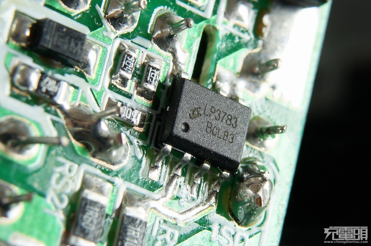 罗马仕3口FH50U 在方案选择上与4口FH60U不同(4口方案是无锡芯朋微Chipown)。罗马仕3口FH50U 使用芯茂微chip-hope 方案,LP3783 是一款恒压、恒流的原边反馈控制芯片,内 置VCBO 为 800V 的功率三极管,具有输出线损补偿技术及多重保护功能,包括开路保护,过压保护,短路保护、过温保护等功能。