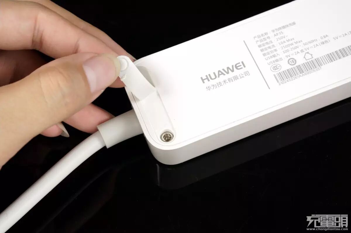 3个USB可以从颜色上就区分开来,HUAWEI logo上方绿色USB带快充输出,白色是普通5V输出。