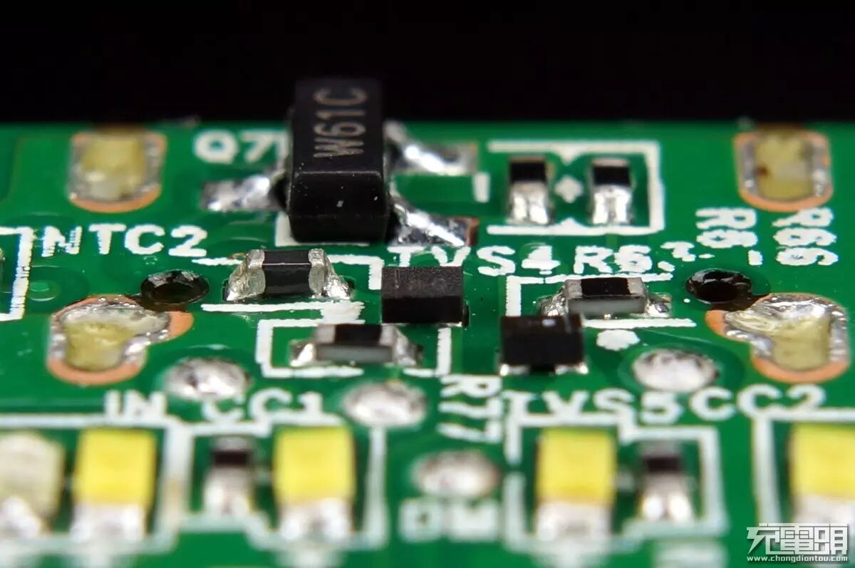 两个H2 AUD 6QX901 MOS作为电池组保护板使用,上面一个D1527是5V口的识别IC。
